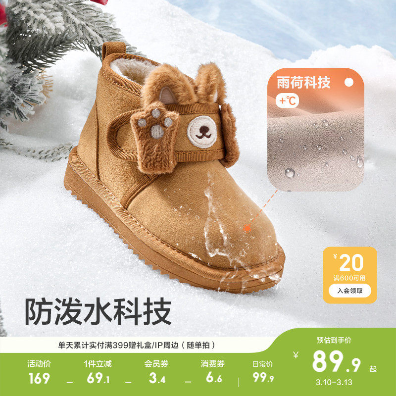 巴拉巴拉童鞋儿童雪地靴男童女童加厚加绒潮流冬季靴子棉靴防泼水