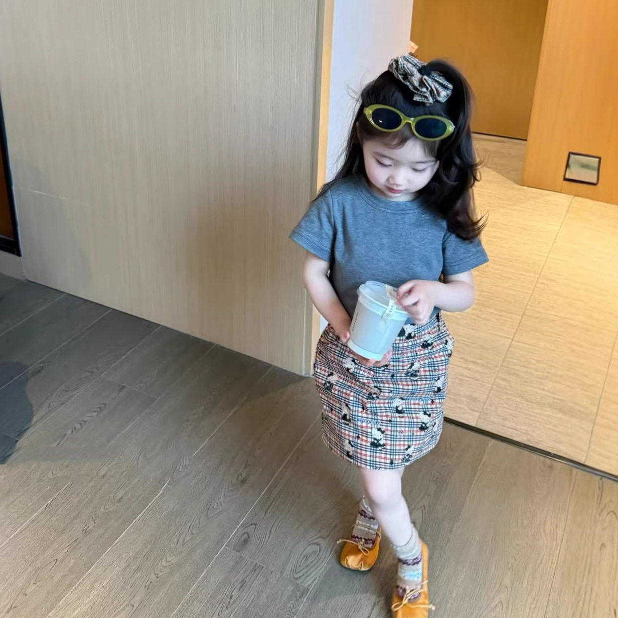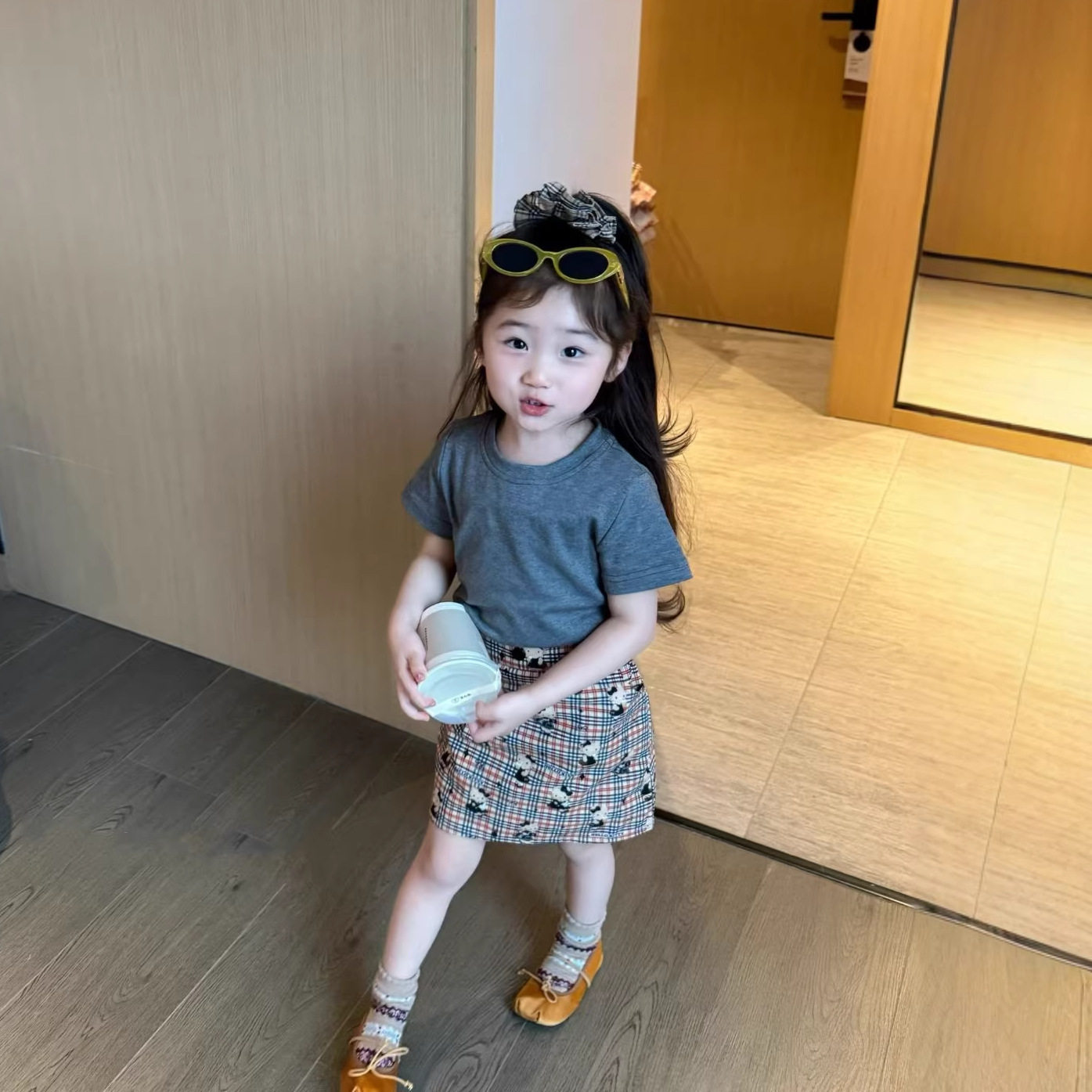 儿童春装套装2026新款洋气女童休闲百搭短袖上衣宝宝卡通半身裙子