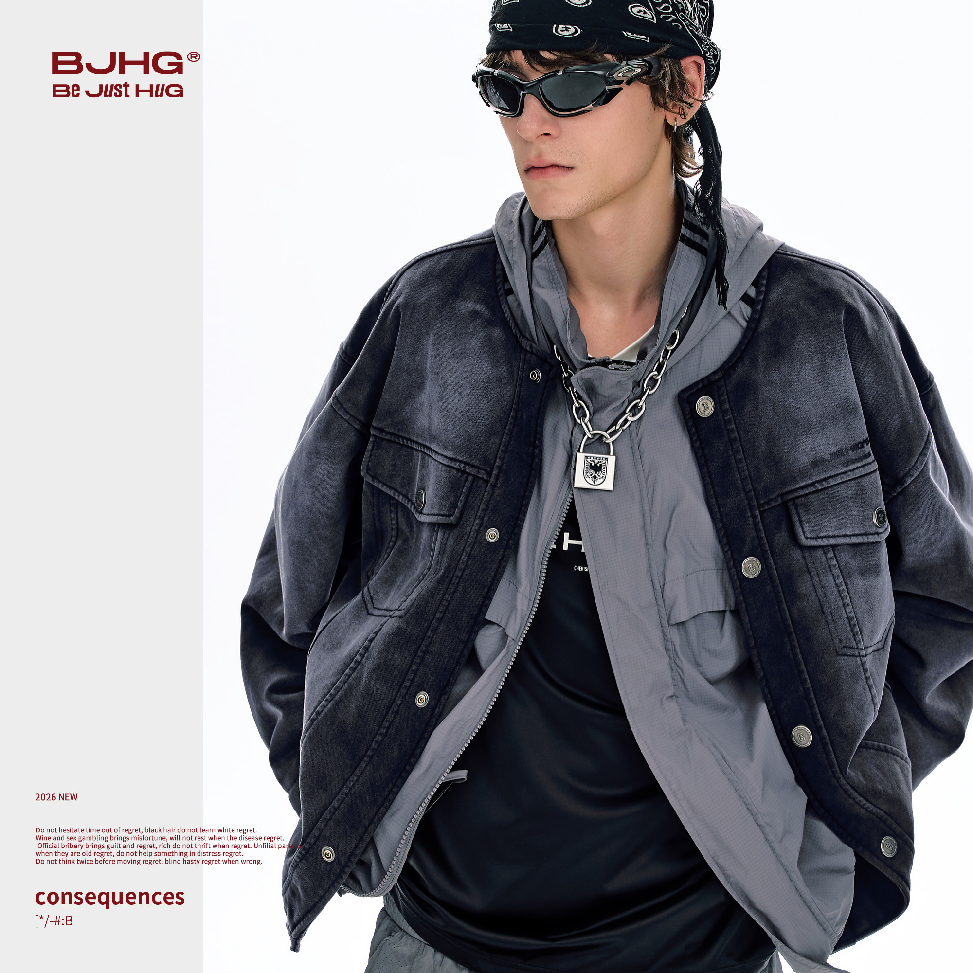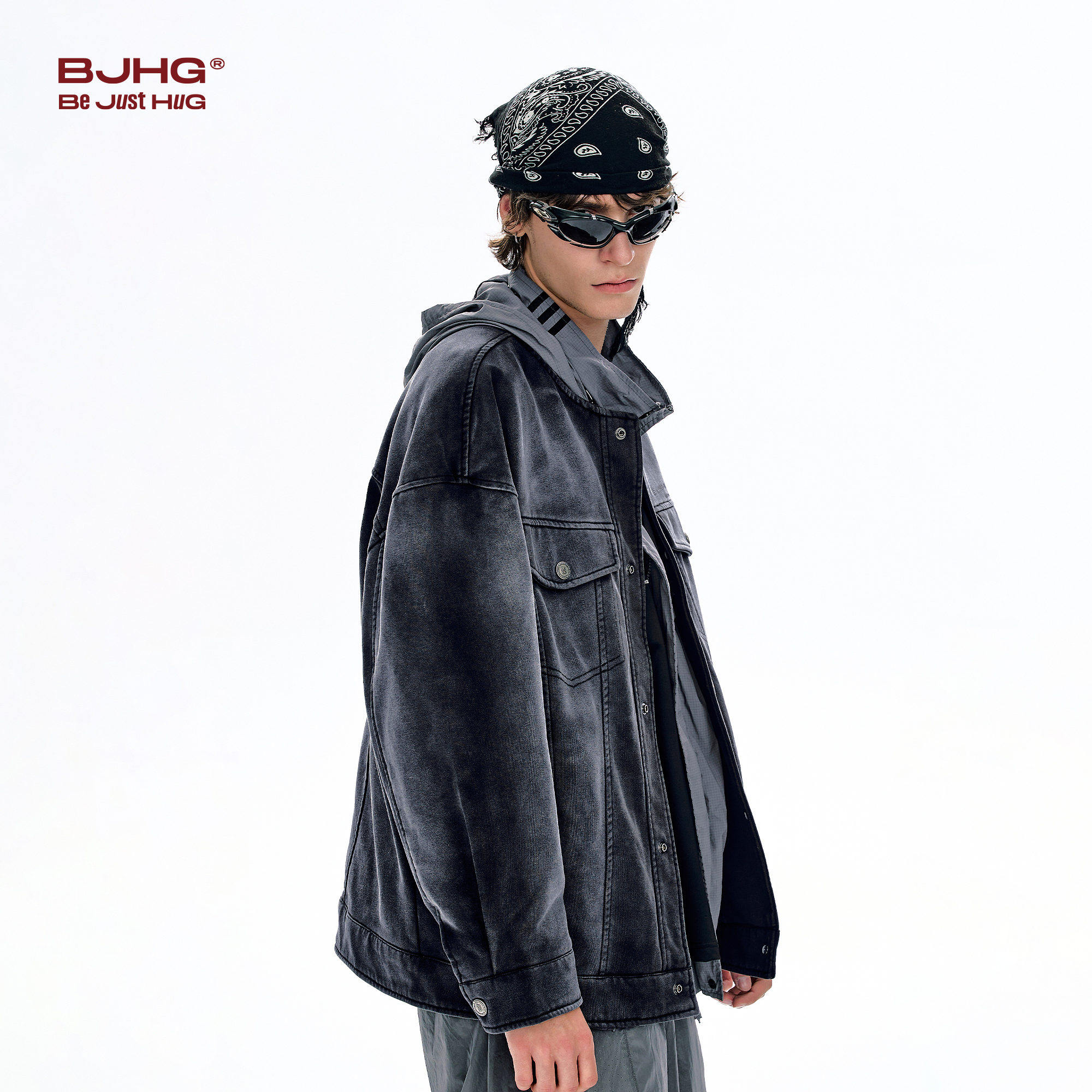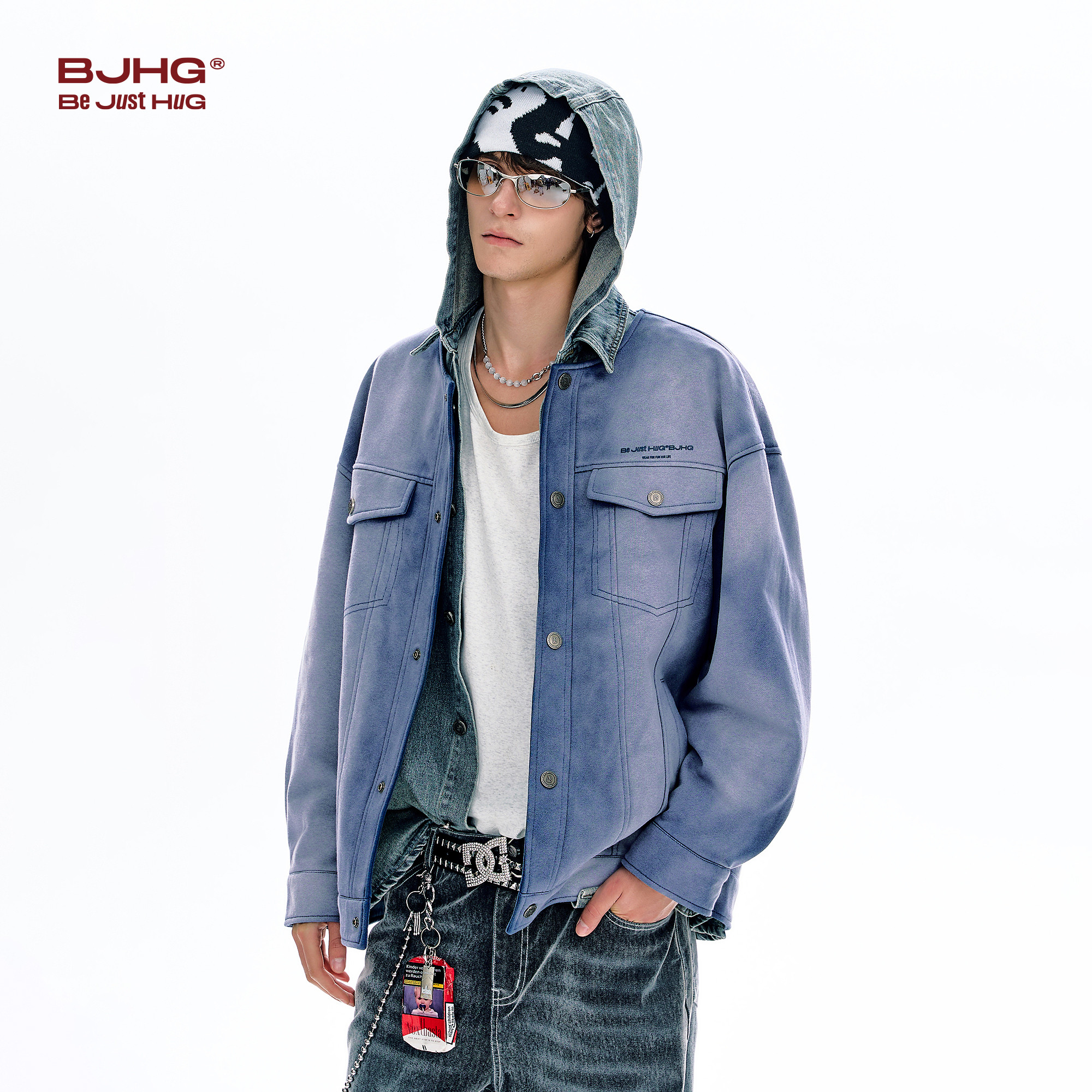 BJHG不计后果美式夹克外套男款春痞帅高级感潮牌无领仿牛仔上衣女