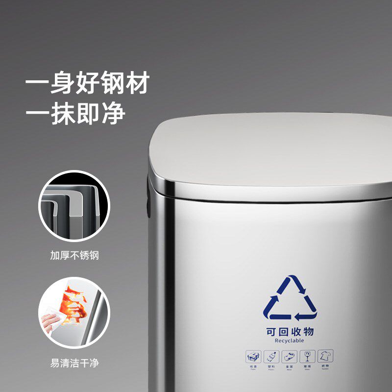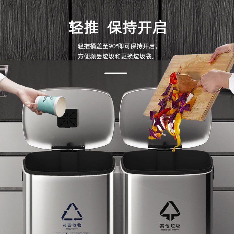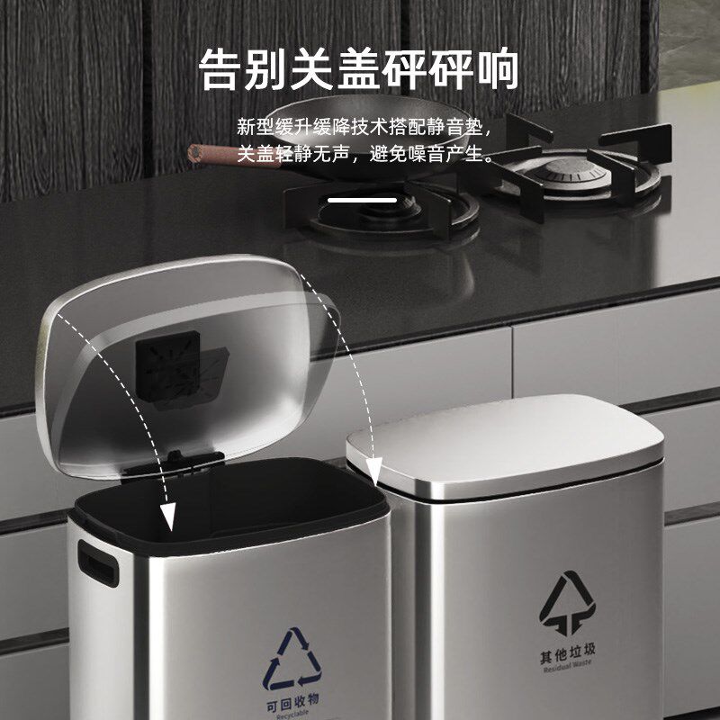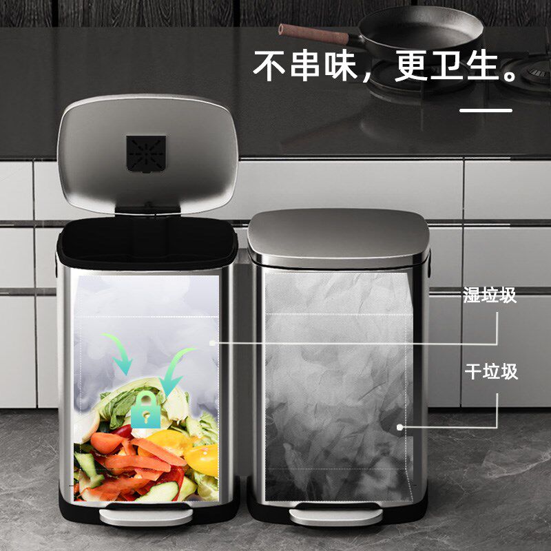 不锈钢分类垃圾桶干湿分离大容量带盖垃圾桶酒S店脚踏式商用大号