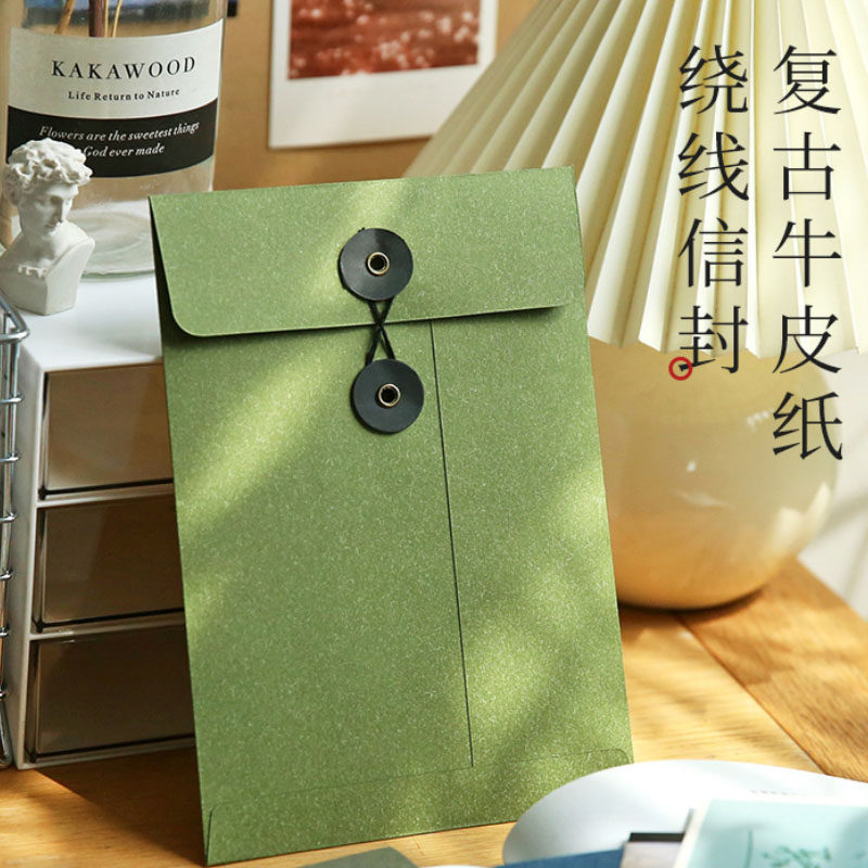 档案袋定制文件袋复古绑带信封袋A5牛皮纸绕线档案袋明信片大号收纳袋烫金印LOGO