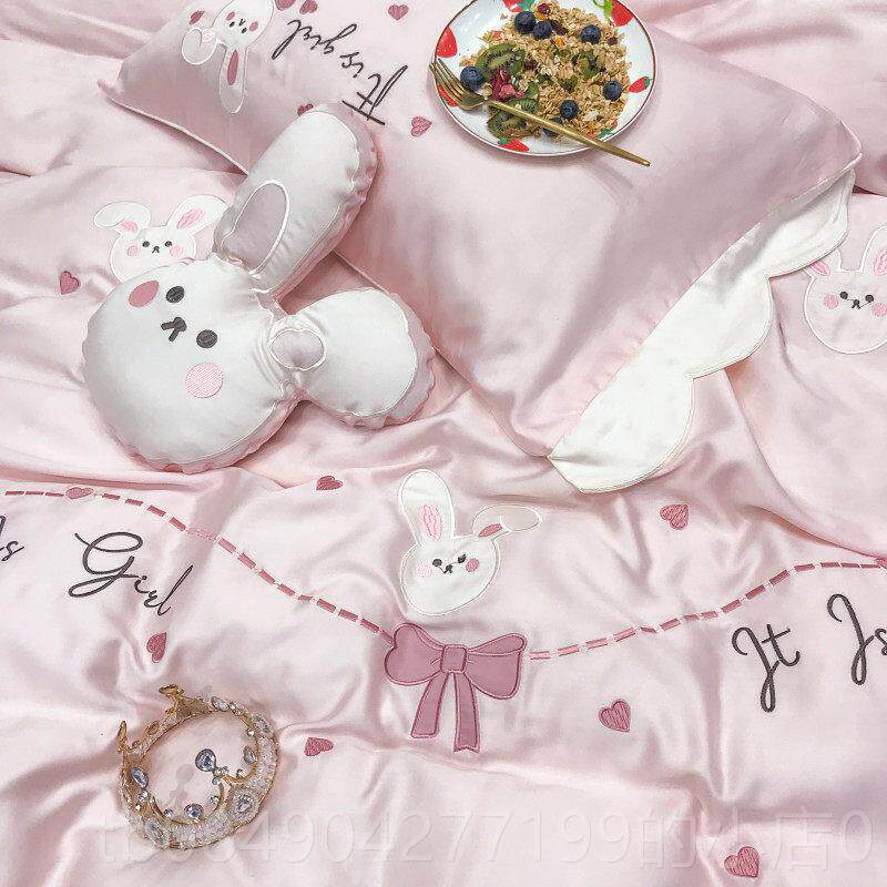 高档爱小纸丝滑裸睡8支天丝四件套夏季薄款兔冰丝0被套可卡通床上