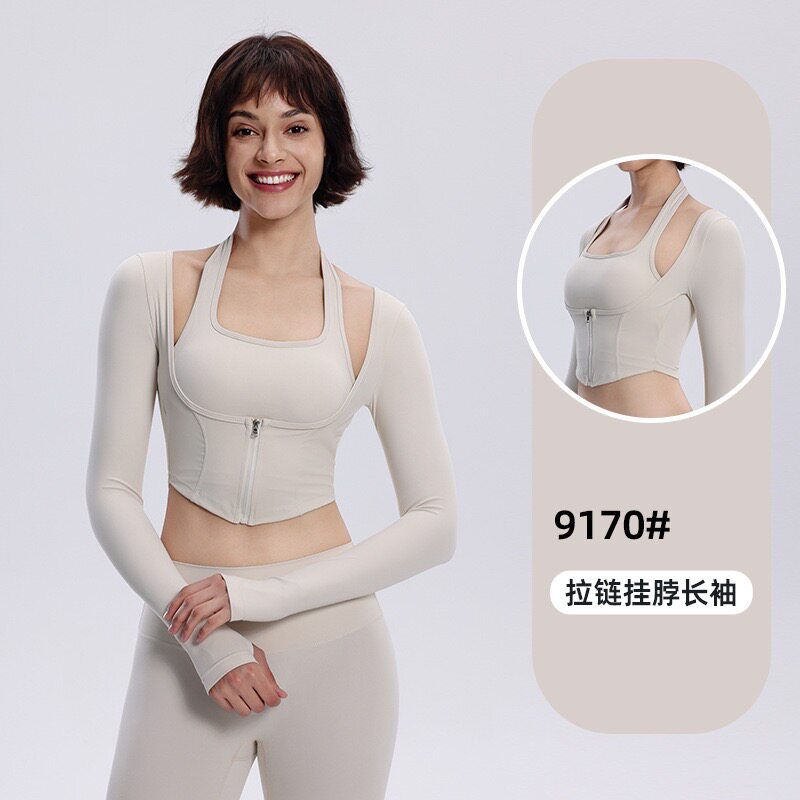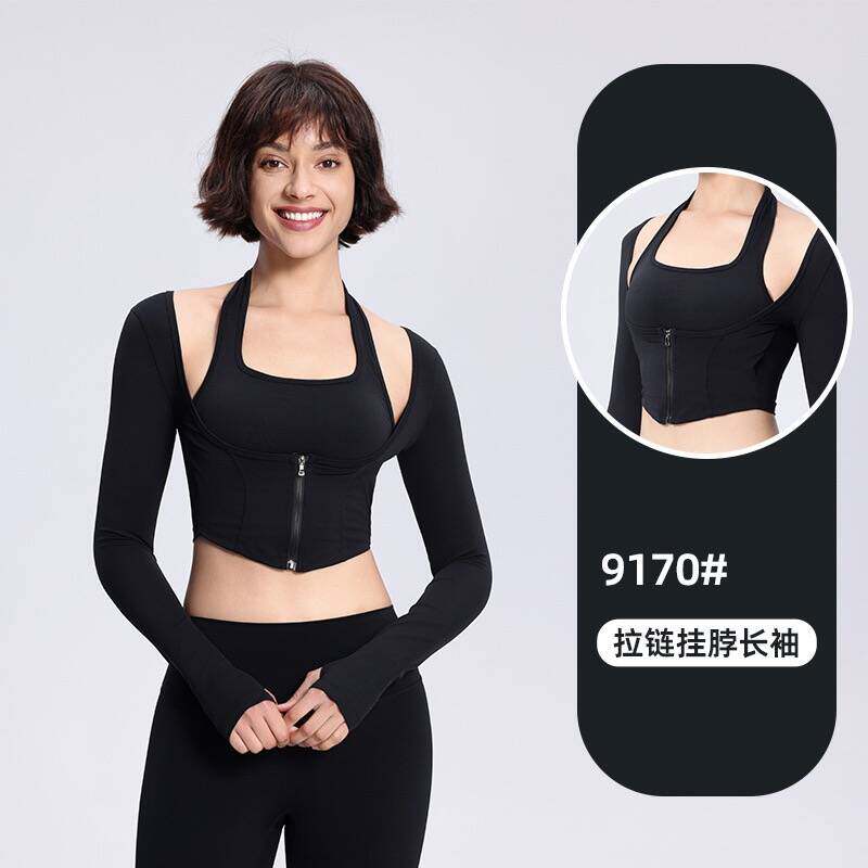 ALOACTIVE瑜伽t恤女假两件长袖普拉提速干上衣挂脖修身运动健身服