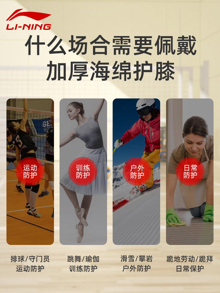李宁排球护膝运动男女跪地膝盖保护套舞蹈足球守门员干活神器专业