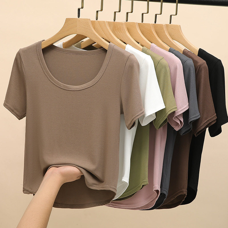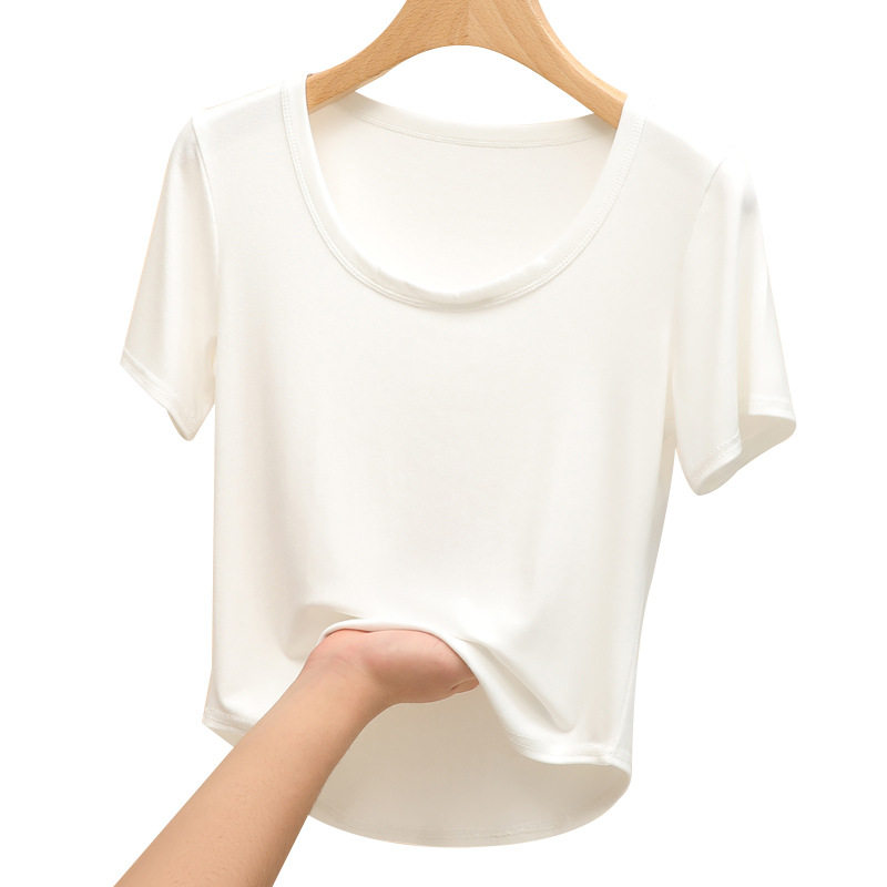 短袖t恤女款2026夏季新款薄款内搭u领打底衫外穿修身白色短款上衣
