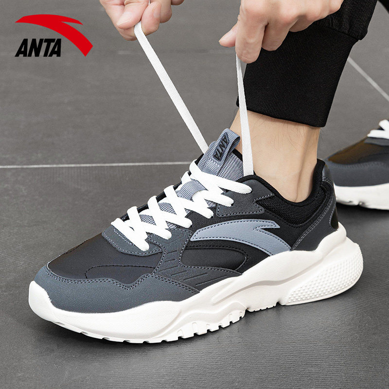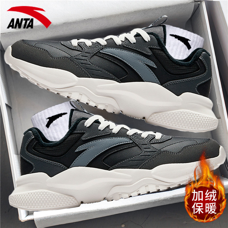 安踏男鞋老爹鞋2026新款春季男款皮面加绒休闲鞋厚底软底运动鞋男