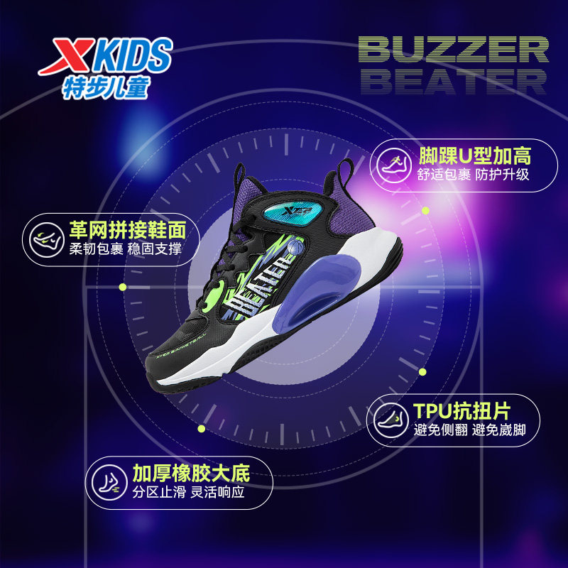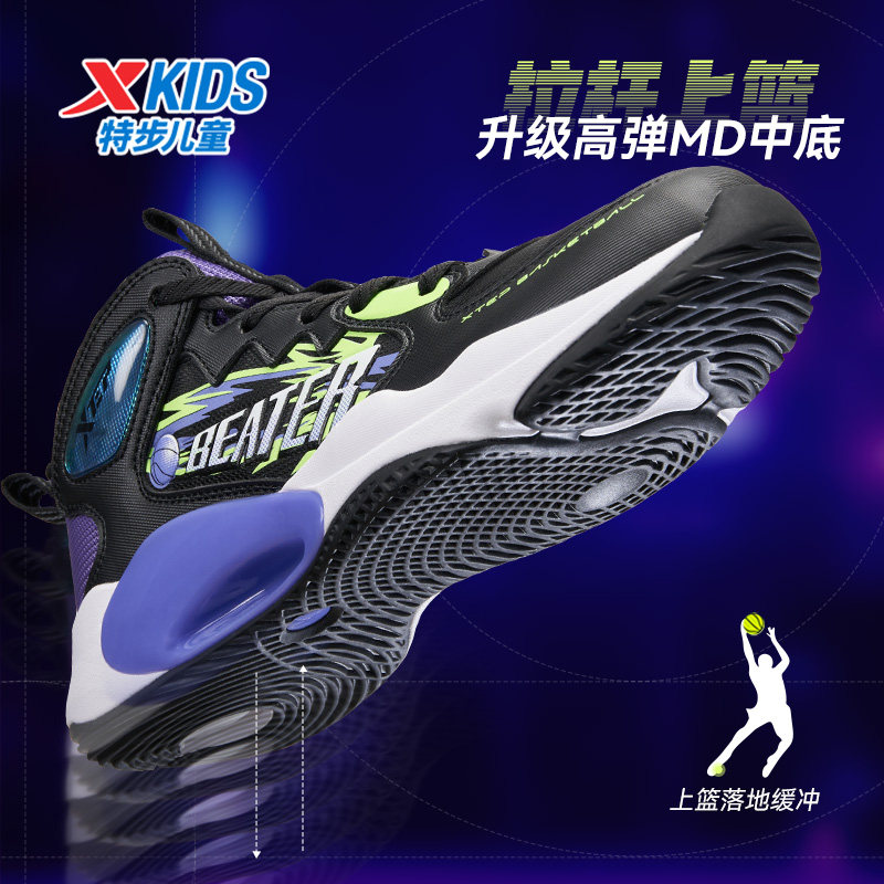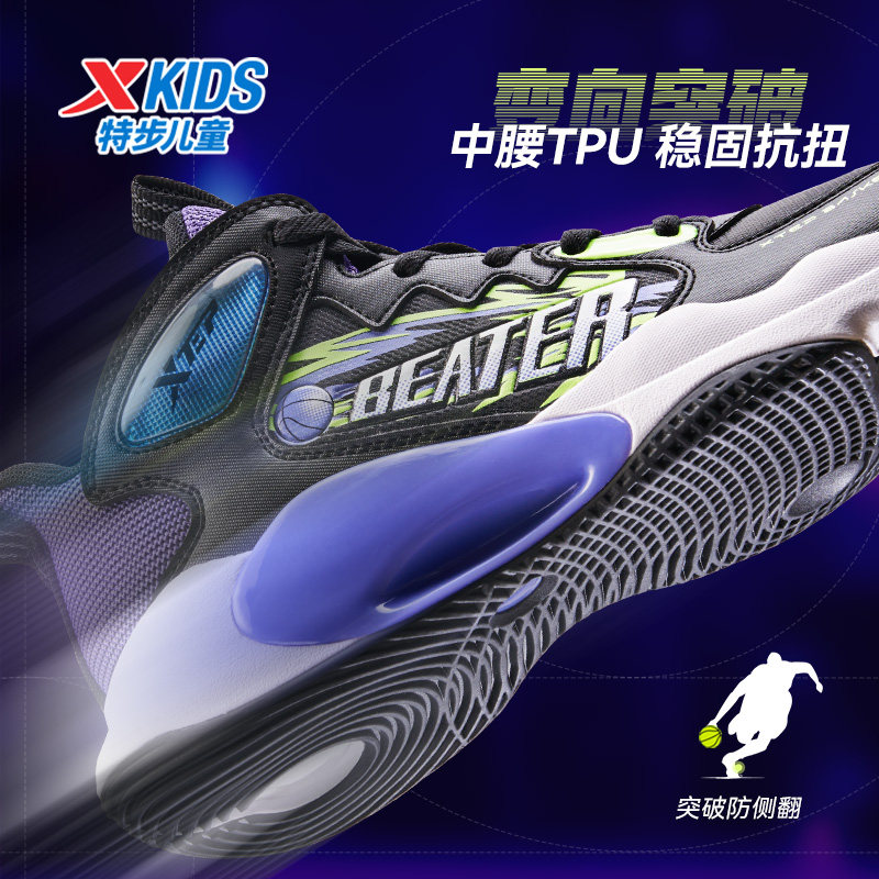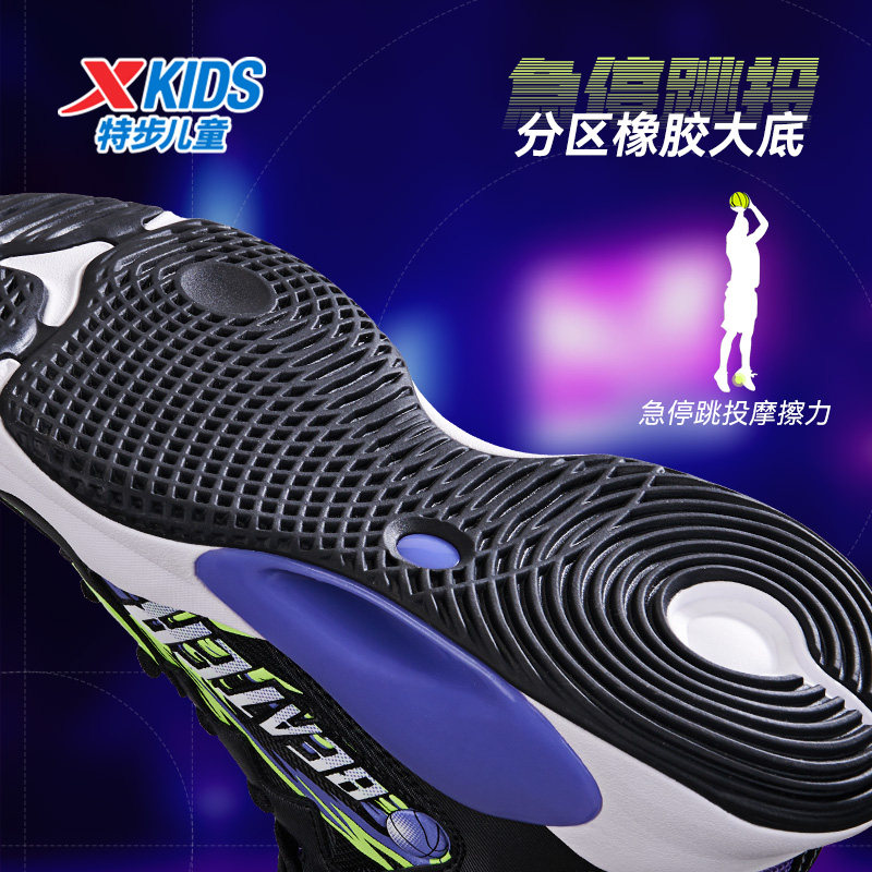 特步童鞋儿童春秋季新款防滑耐磨实战篮球鞋男童鞋大童革面运动鞋