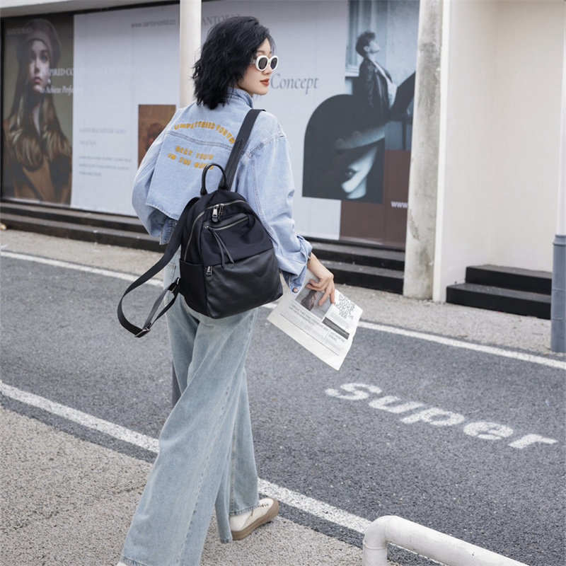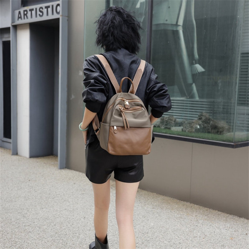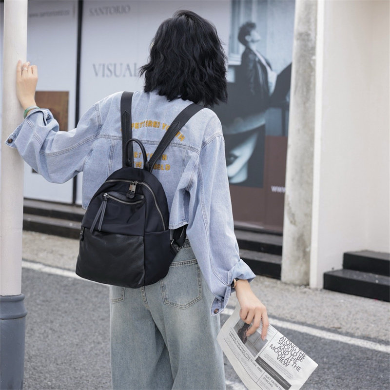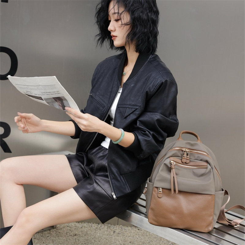 双肩包女2025新款时尚大容量旅游背包女轻便牛津布帆布配头层牛皮