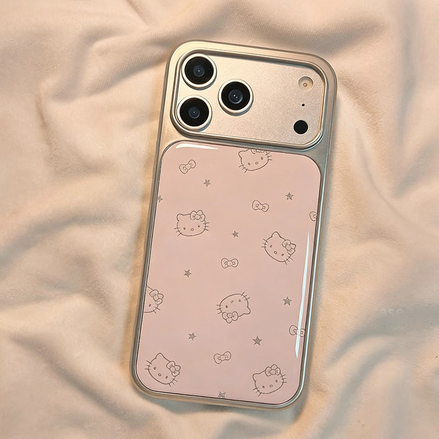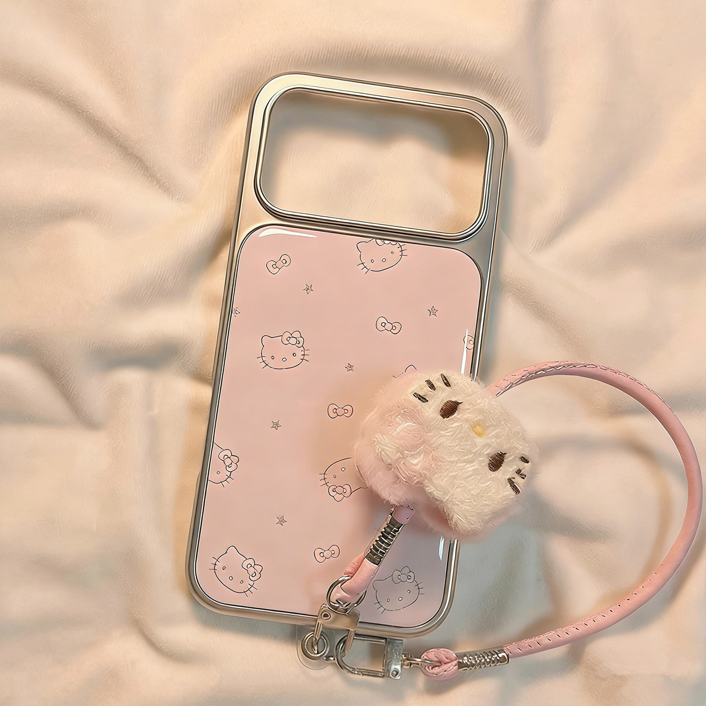 粉色星星猫咪适用苹果17promax手机壳新款17pro高级感15带挂绳巨好看14卡通女款15创意全包16pro小众女保护套