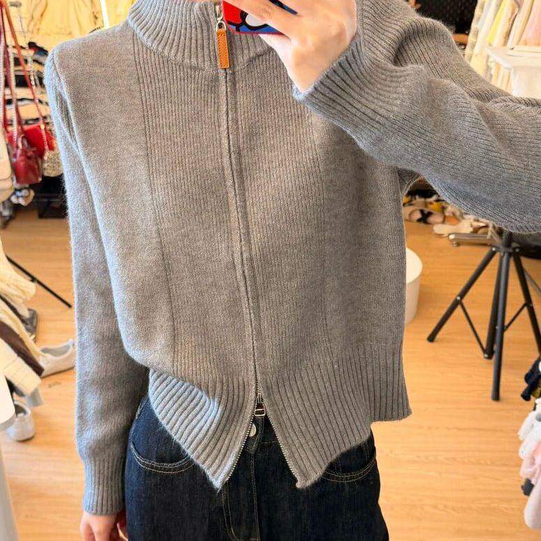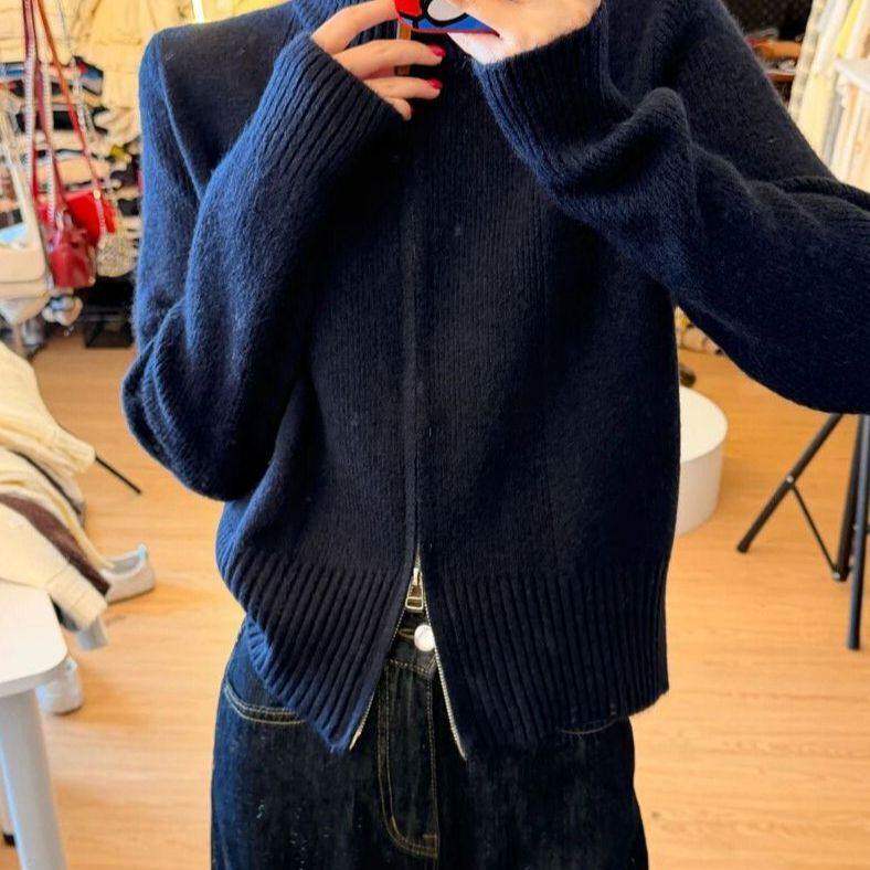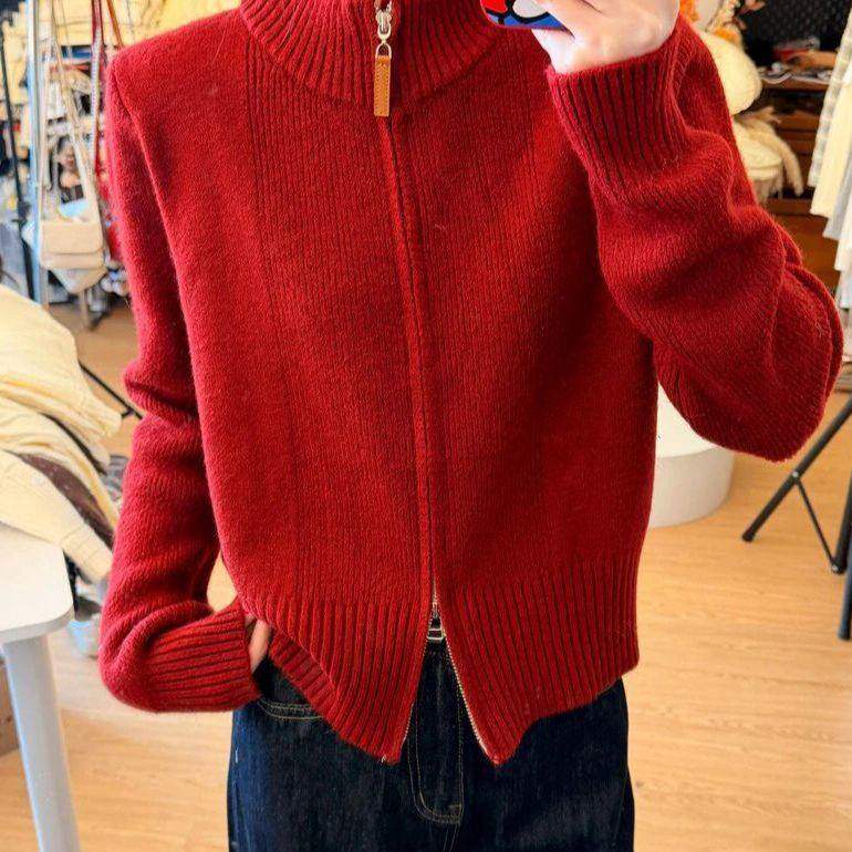 小个子短款拉链半高领毛衣外套女款2026新款秋冬季针织开衫上衣女