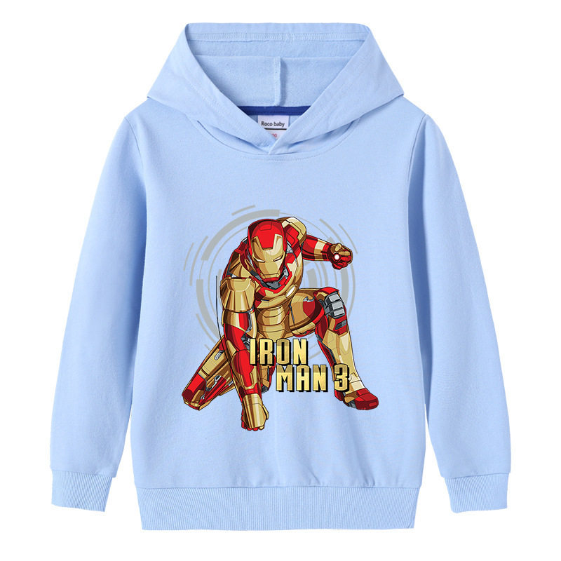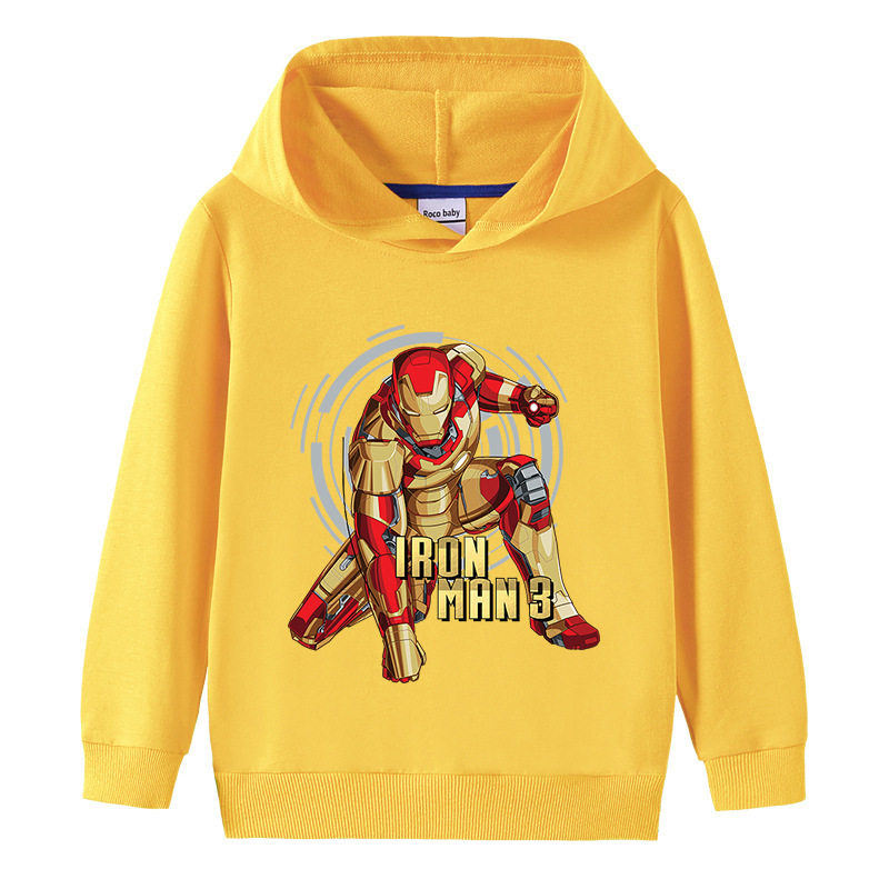 卡通钢铁侠童装儿童长袖卫衣红色男童连帽子上衣男孩纯棉薄款春装