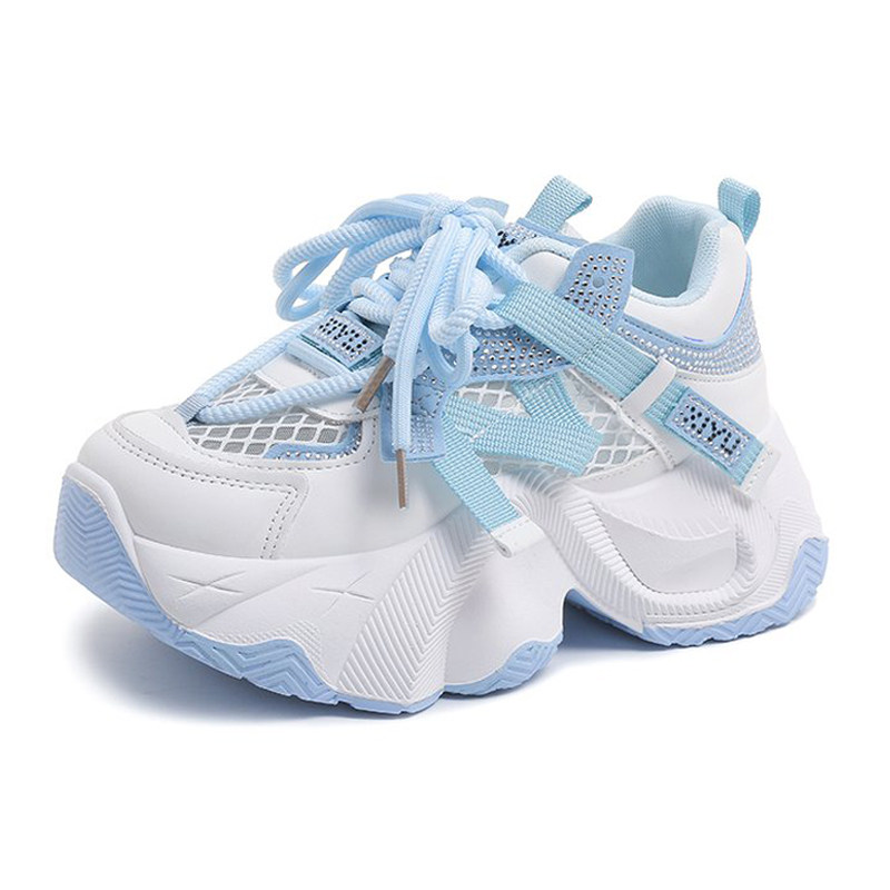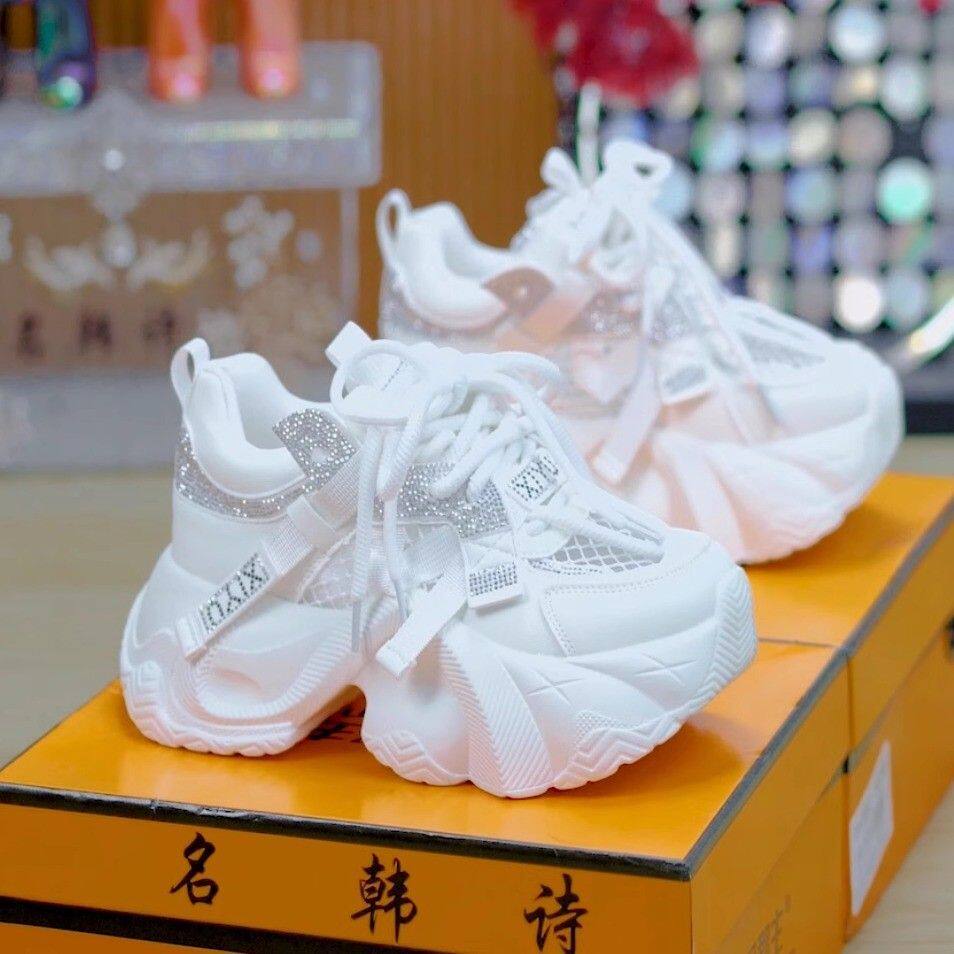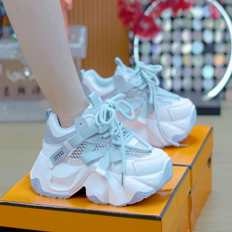 7cm水钻透气厚底老爹鞋女2025春季小个子百搭系带增高休闲运动鞋