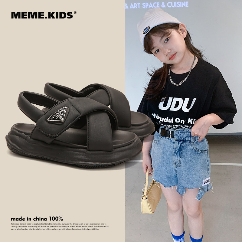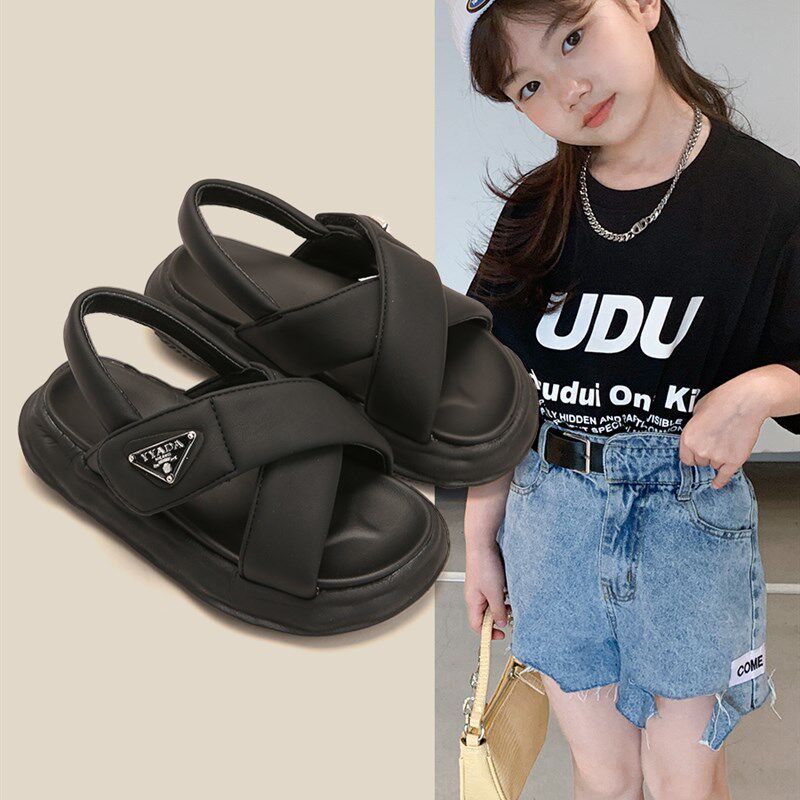 女童运动凉鞋2023夏季新款黑色男童鞋子厚底休闲鞋女孩儿童沙滩鞋