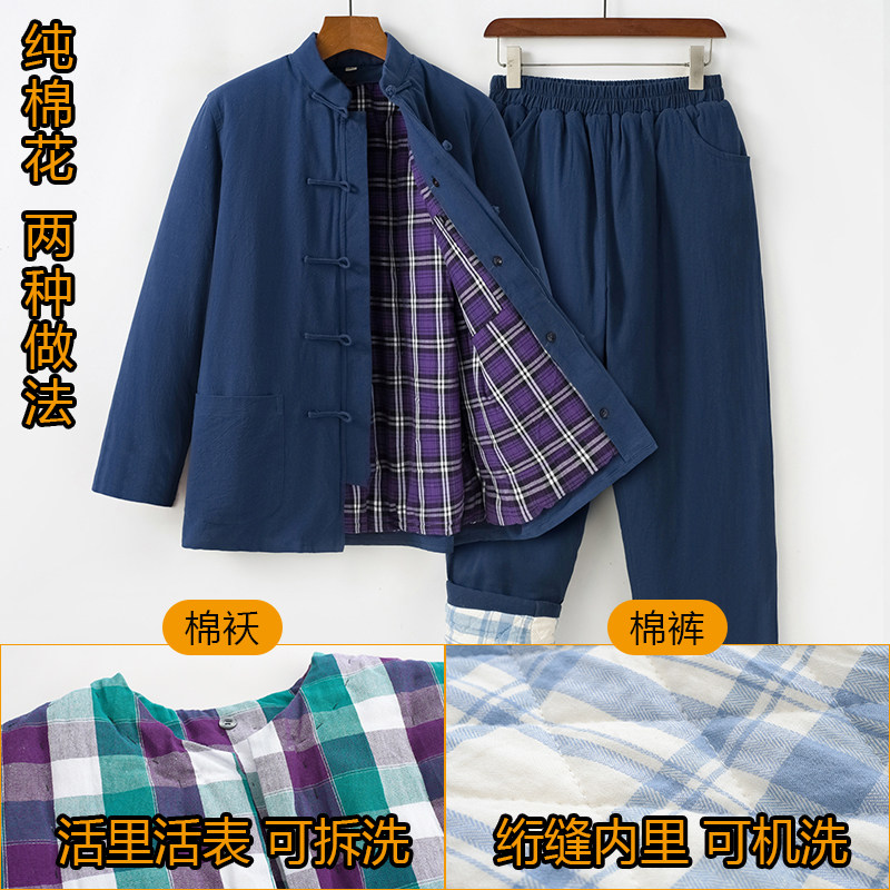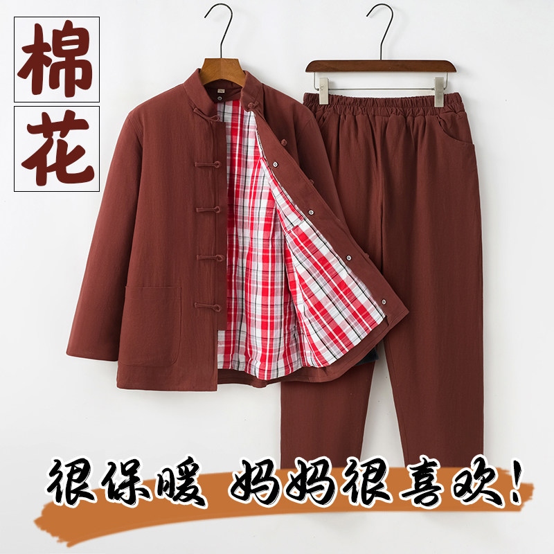 新冬季女款中国风套装纯棉花棉麻棉衣棉裤宽松休闲居家大码妈妈装