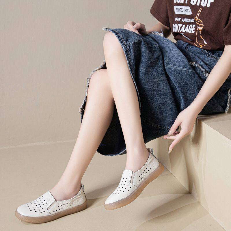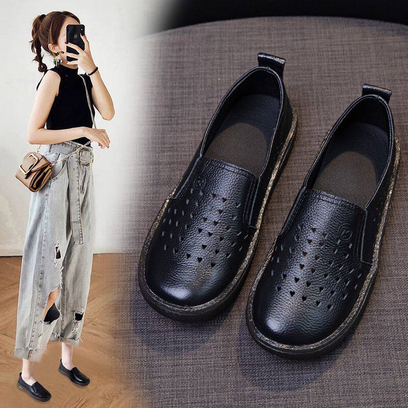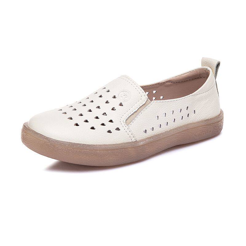 真皮乐福鞋女2026春夏镂空透气小白鞋女款头层牛皮浅口单鞋妈妈鞋