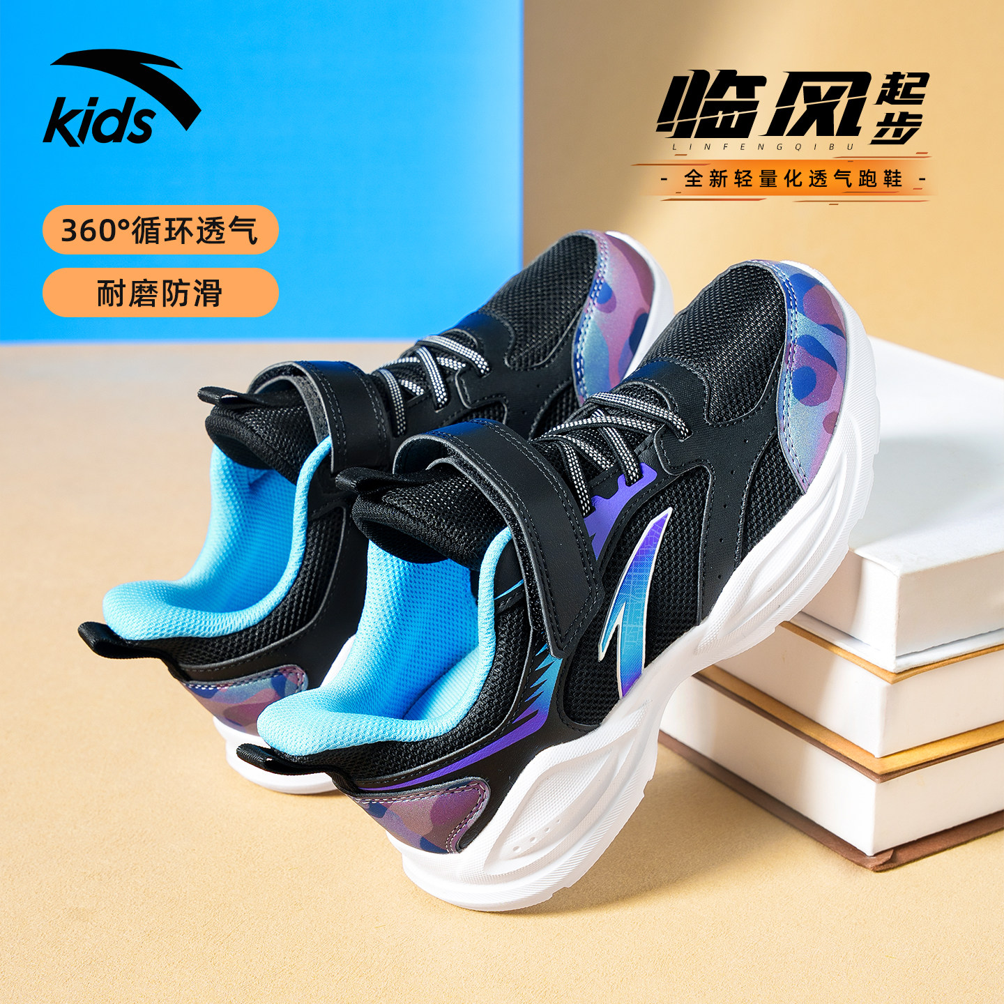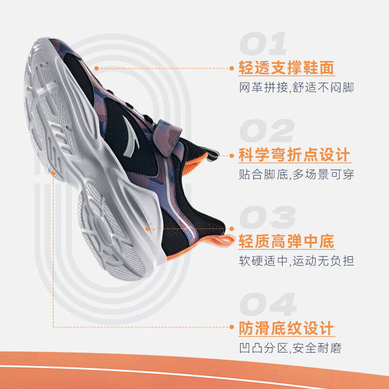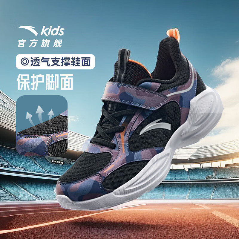安踏儿童运动鞋中大童2026春季新款男童低帮网面魔术贴轻便跑步鞋