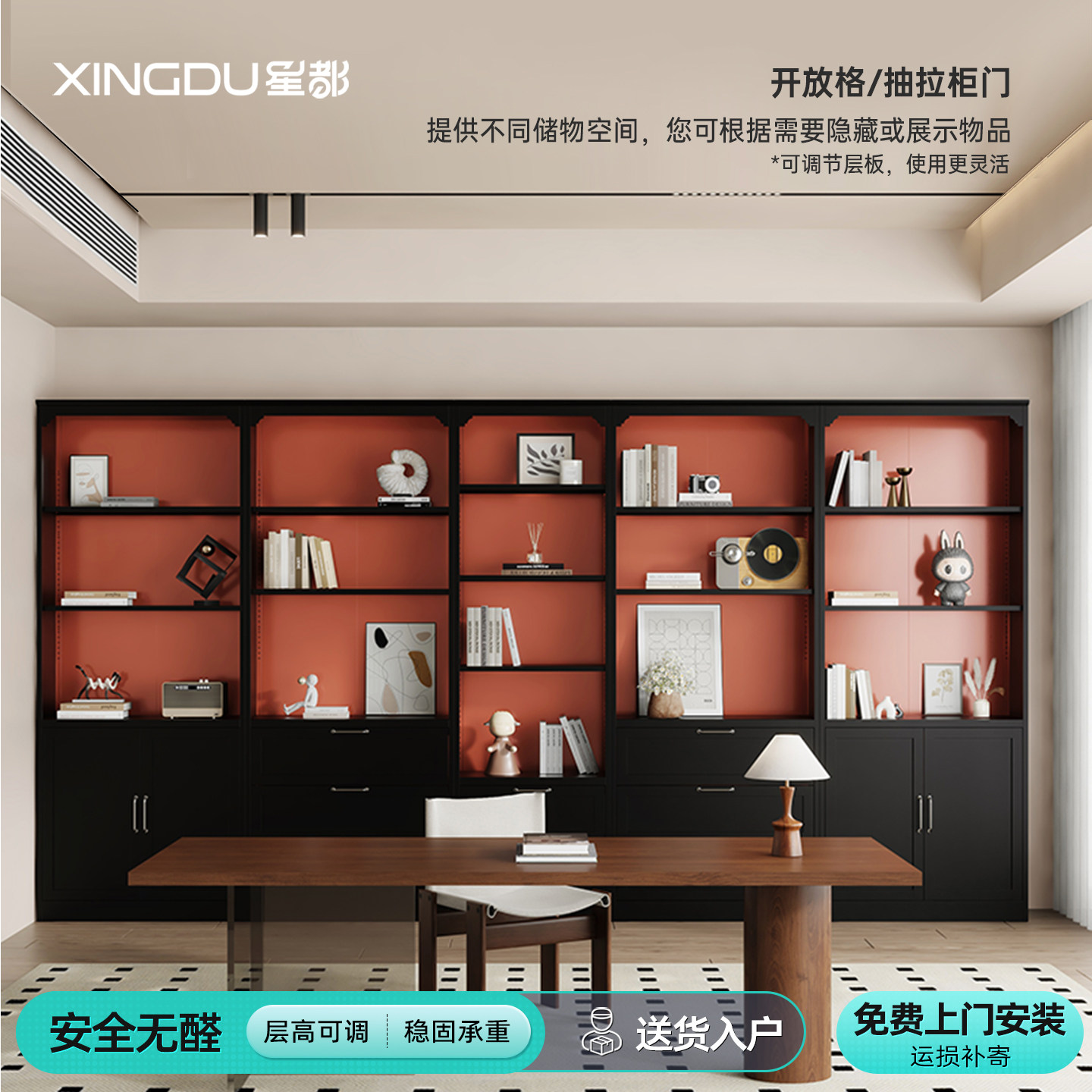 星都宋氏美学钢制书柜轻奢风落地储物柜客厅现代简约靠墙柜收纳柜