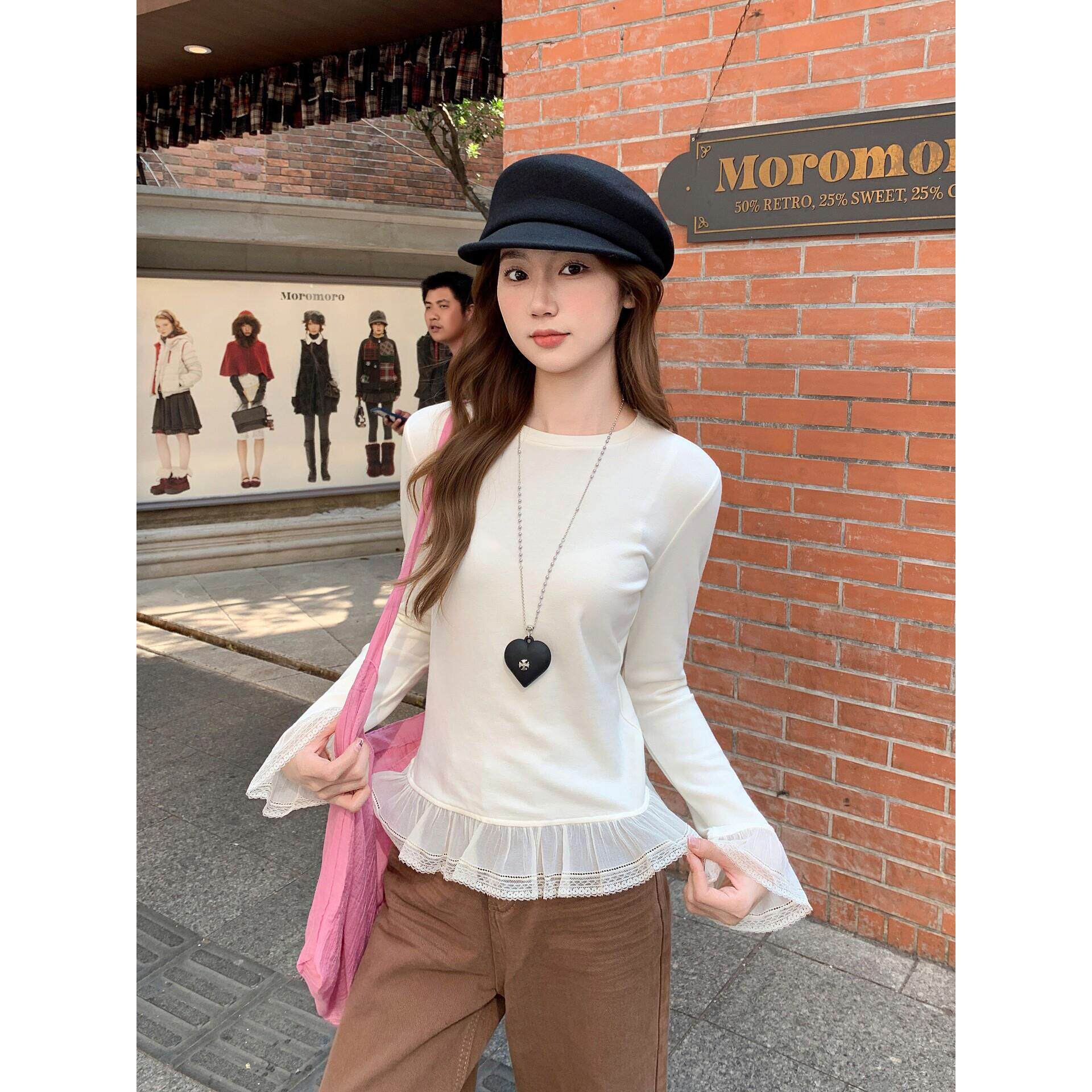 蕾丝花边长袖t恤女2026早春新款修身内搭高级感打底衫可外穿上衣