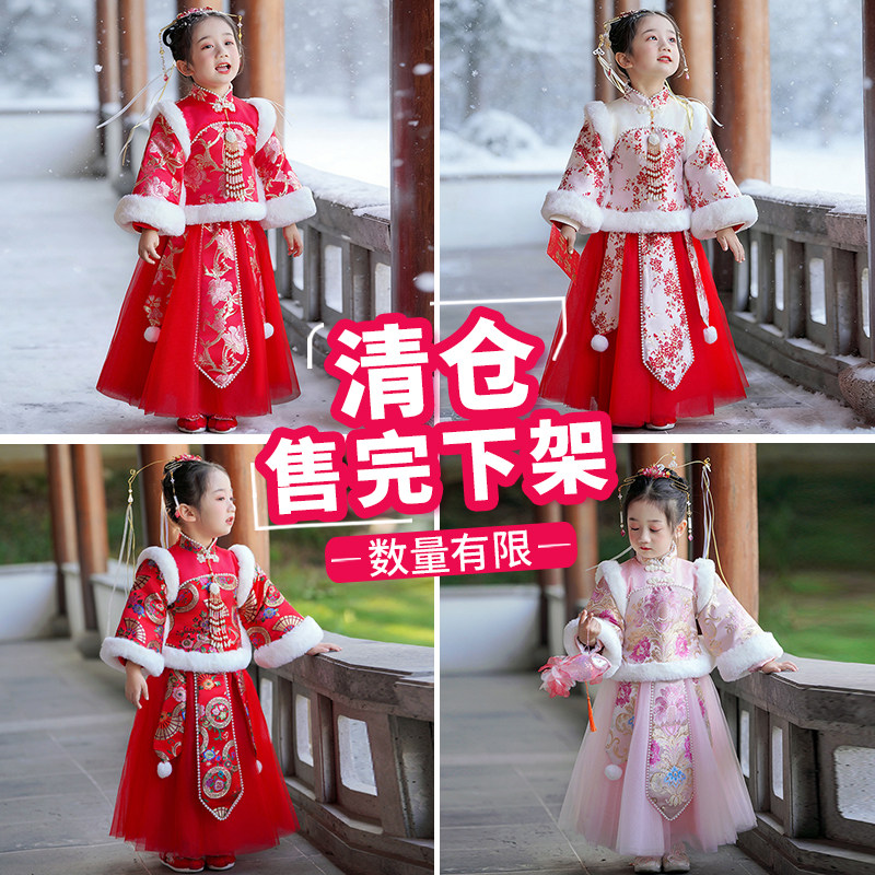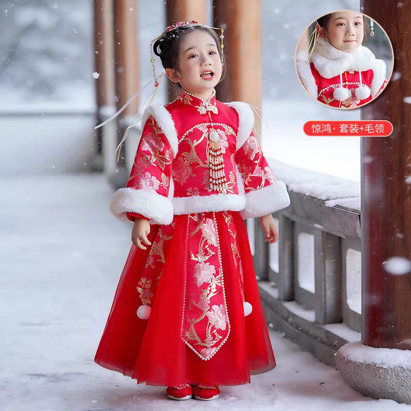 拜年服女童冬装儿童汉服宝宝喜庆风新中式新年装女孩过年服套装冬