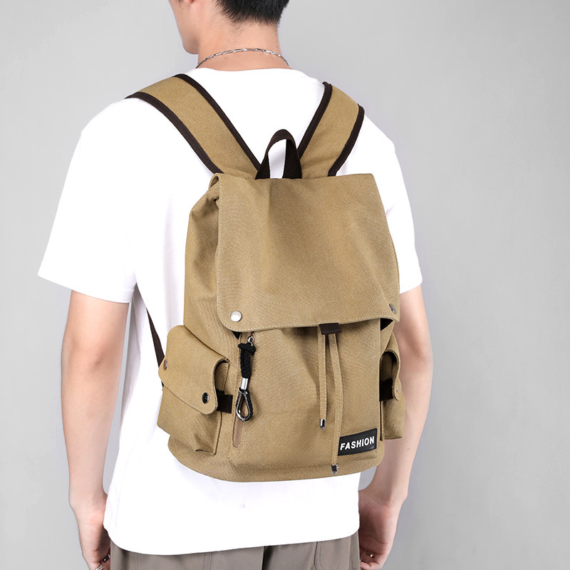 帆布男士双肩包休闲出行旅行包复古风潮流背包电脑包学生书包男款