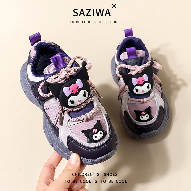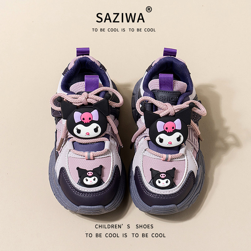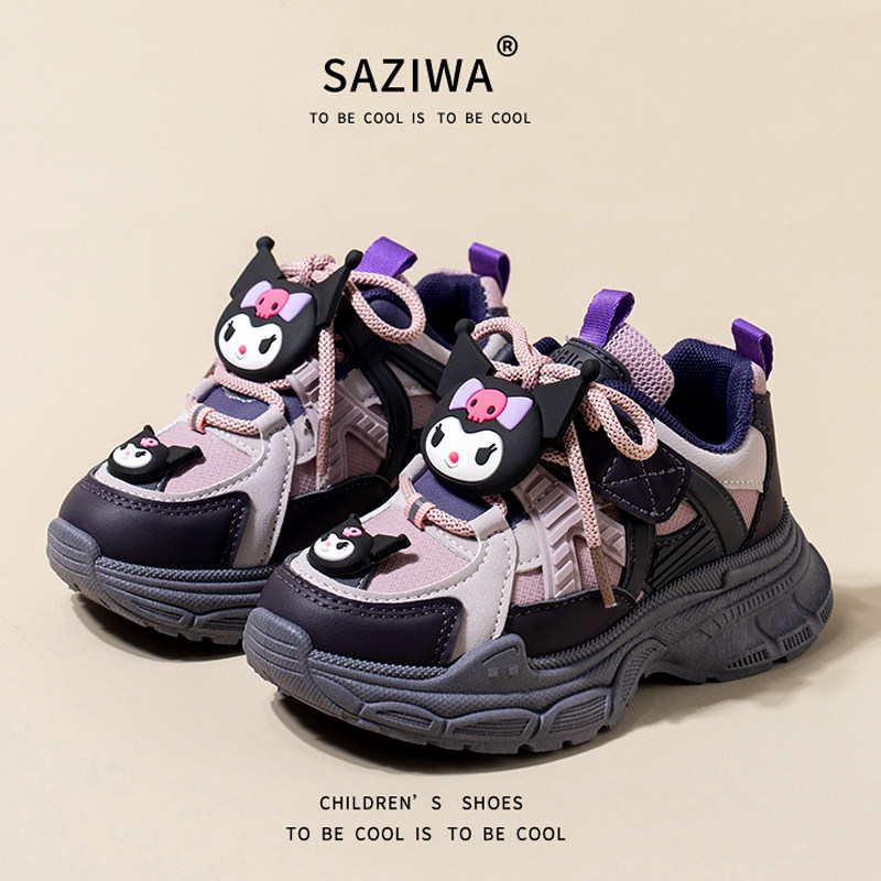 库洛米女童鞋子2025秋冬季儿童运动加绒二棉鞋女孩老爹鞋耐脏皮面