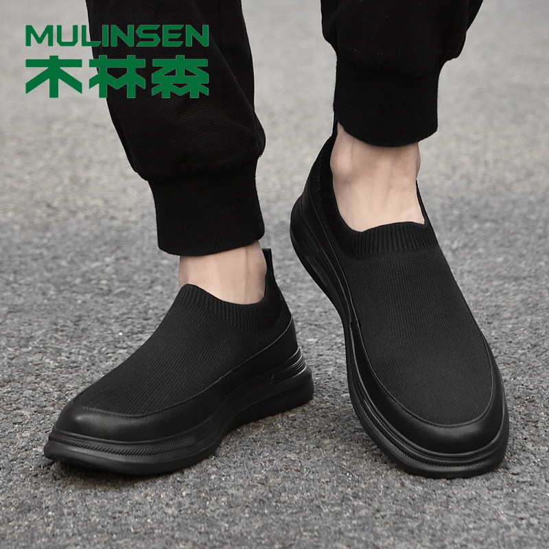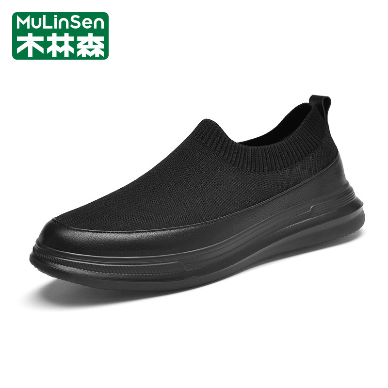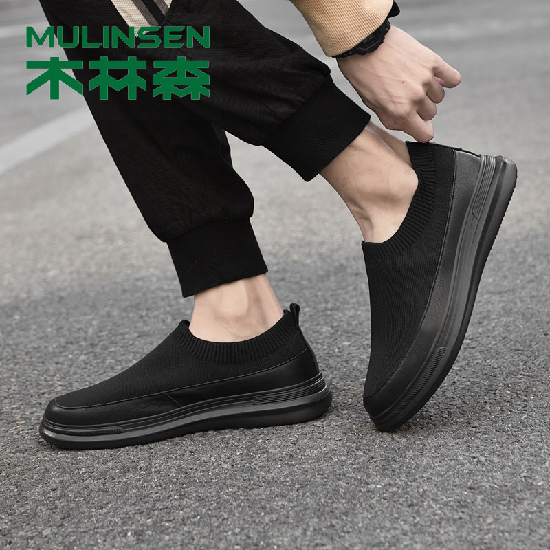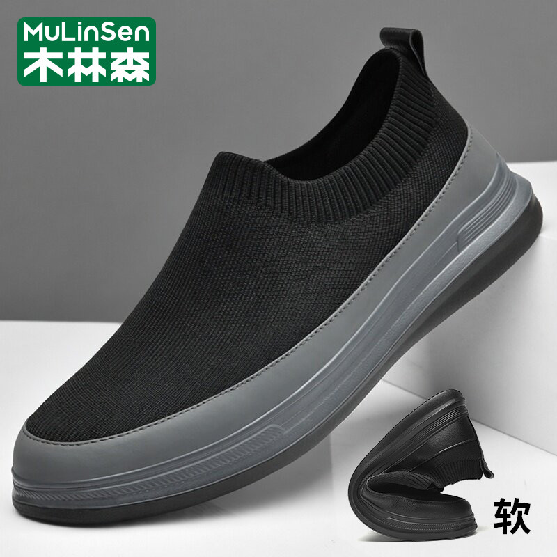 木林森男鞋2026年新款春季休闲运动飞织一脚蹬爸爸软底老北京布鞋