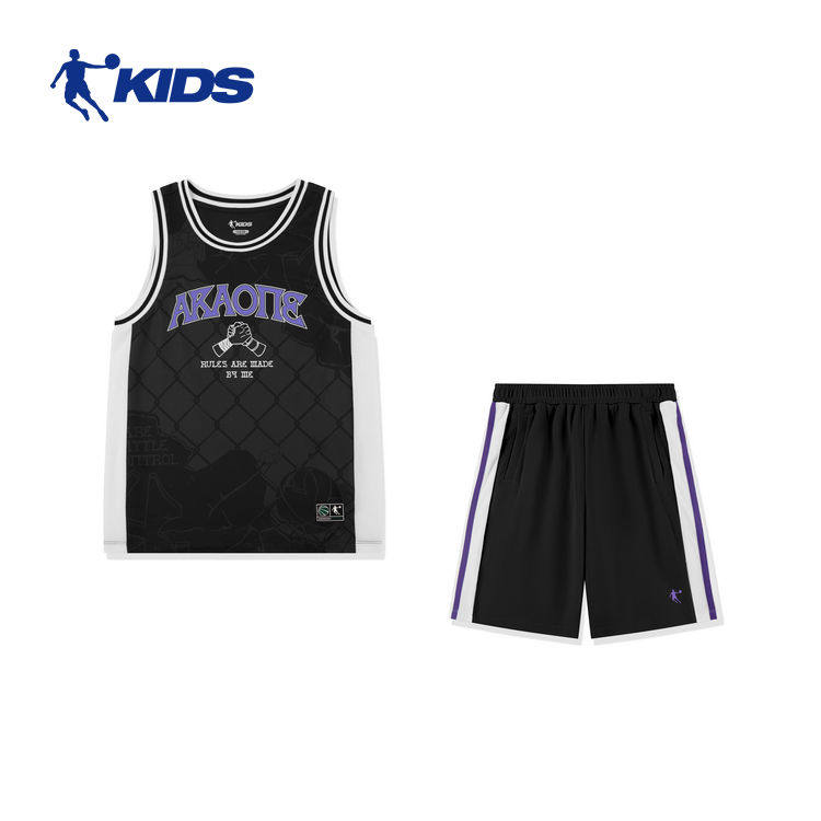 乔丹童装男童两件套篮球套装2025年夏季新款大童速干衣服T8521011