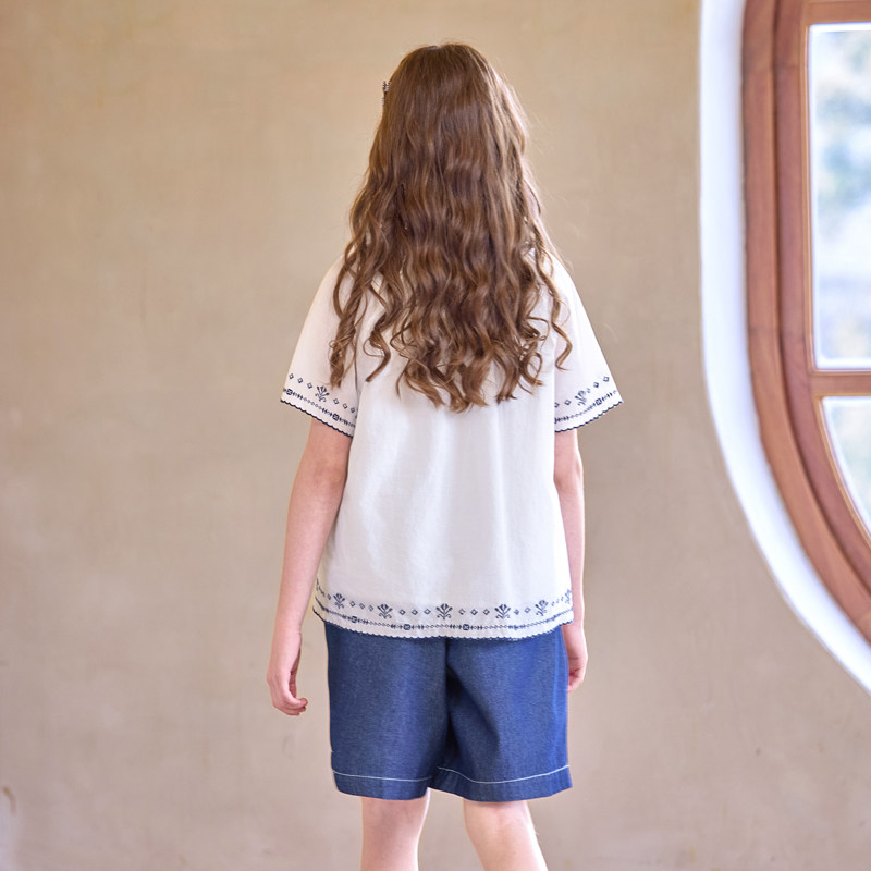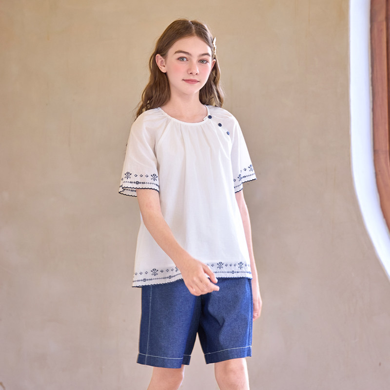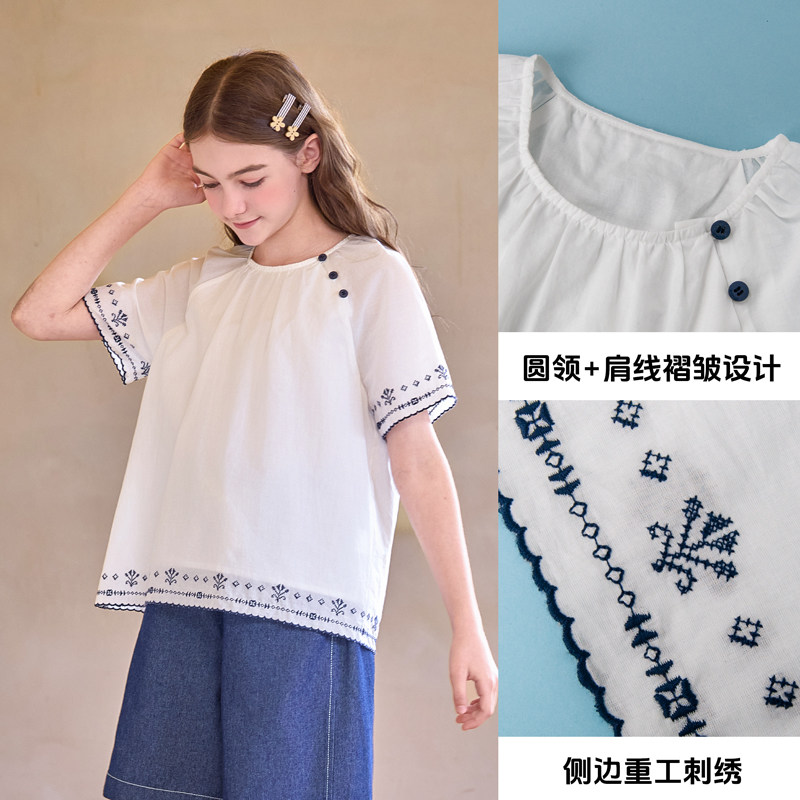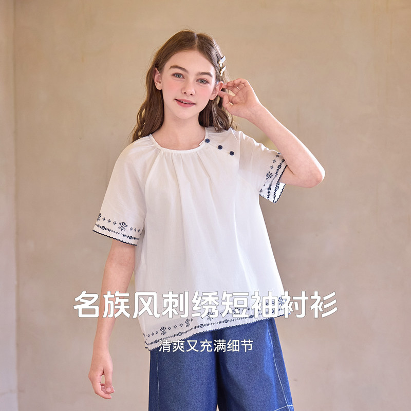 女大童纯棉衬衫夏款2026新款短袖初中生女孩学生青少年薄款衬衣