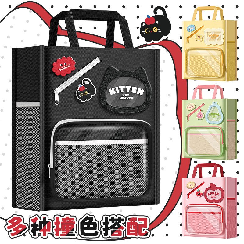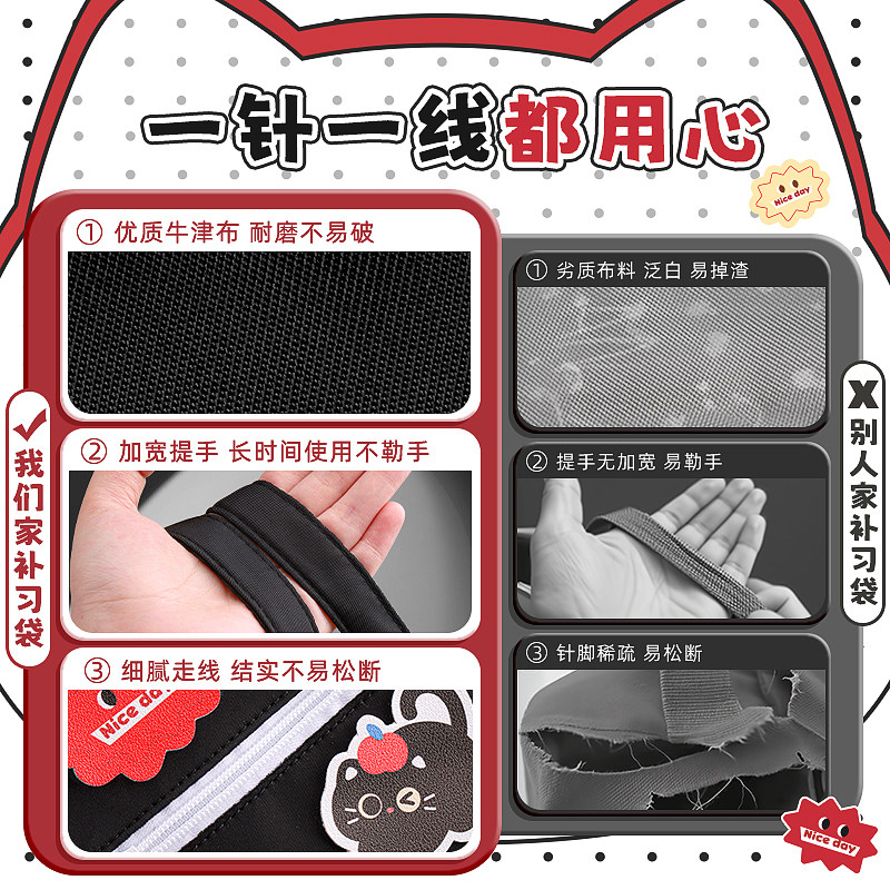 加厚大容量补习袋手提袋学生拎书袋补课包儿童女孩帆布美术袋作业试卷收纳袋初中生男生用补习手提书包拉链袋