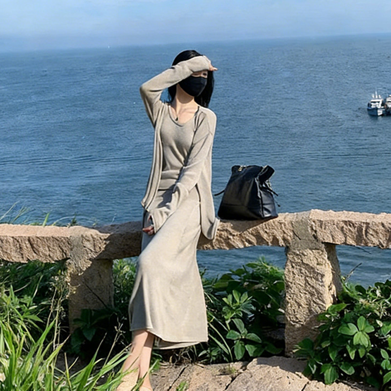 2026新款早春漂亮衣服针织开衫吊带裙子套装三件套女装设计感小众