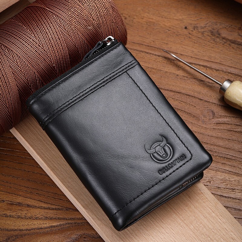 牛船长男士短款真皮钱包休闲多功能多卡位相册行驾驶证卡包零钱夹