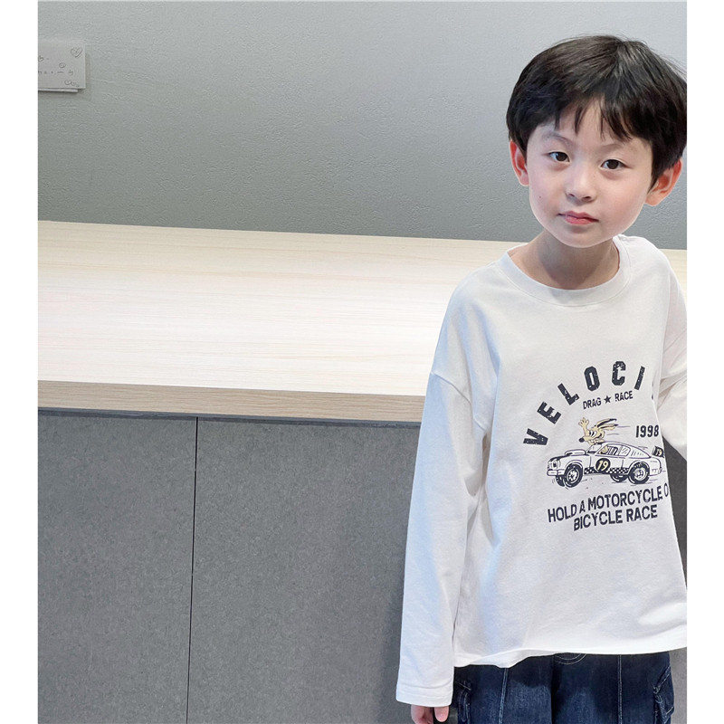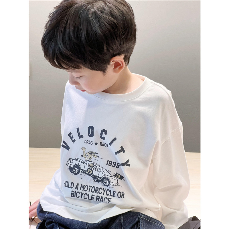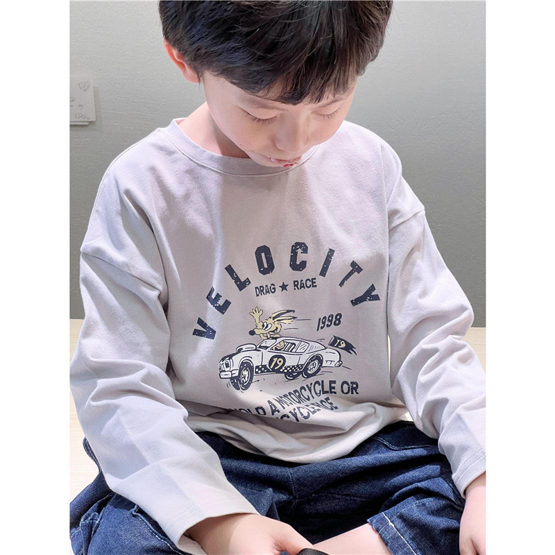 童妈定制男童韩版宽松纯棉圆领长袖儿童美式复古做旧兔子T恤秋装