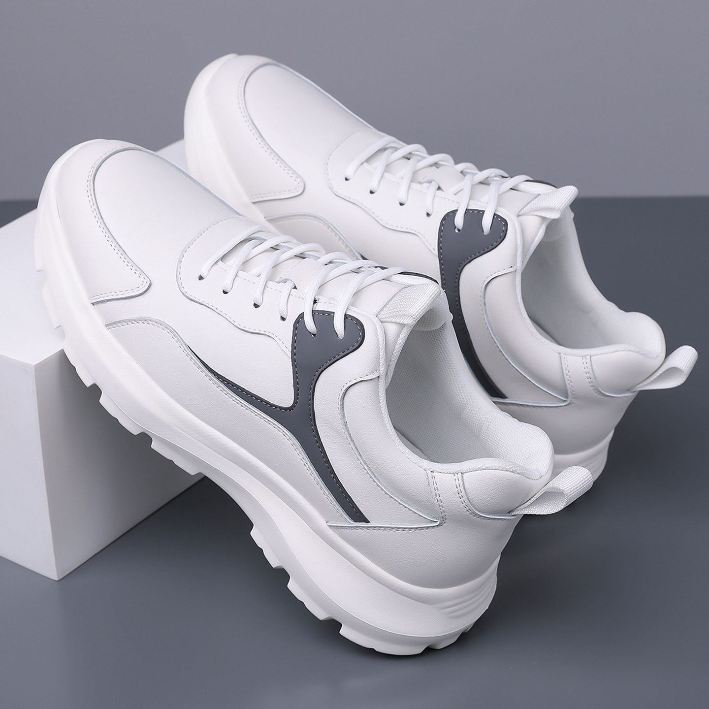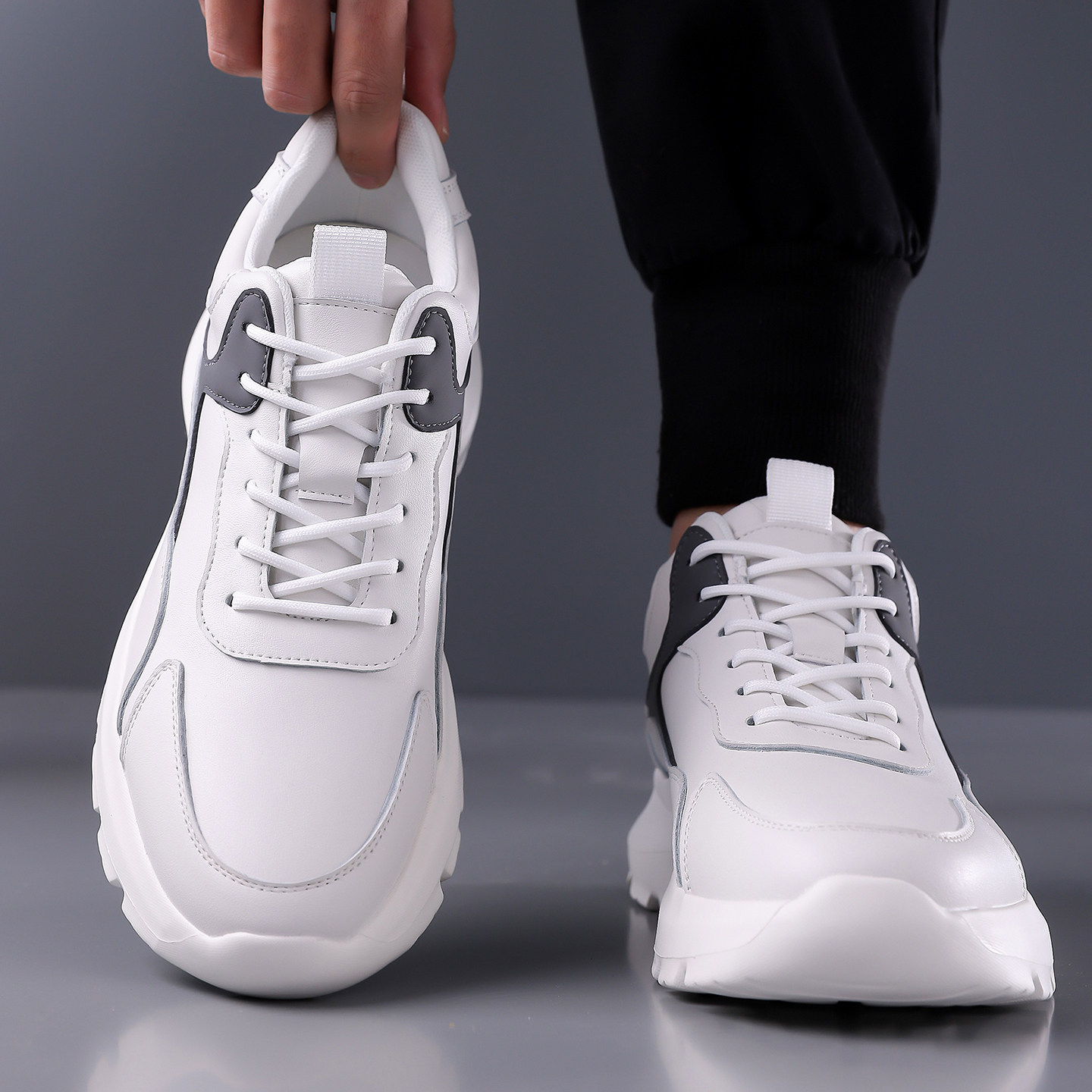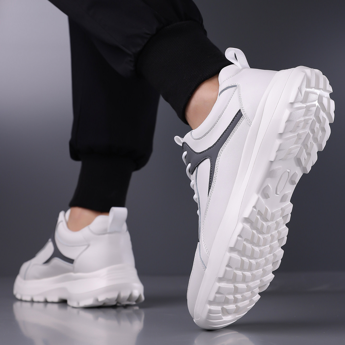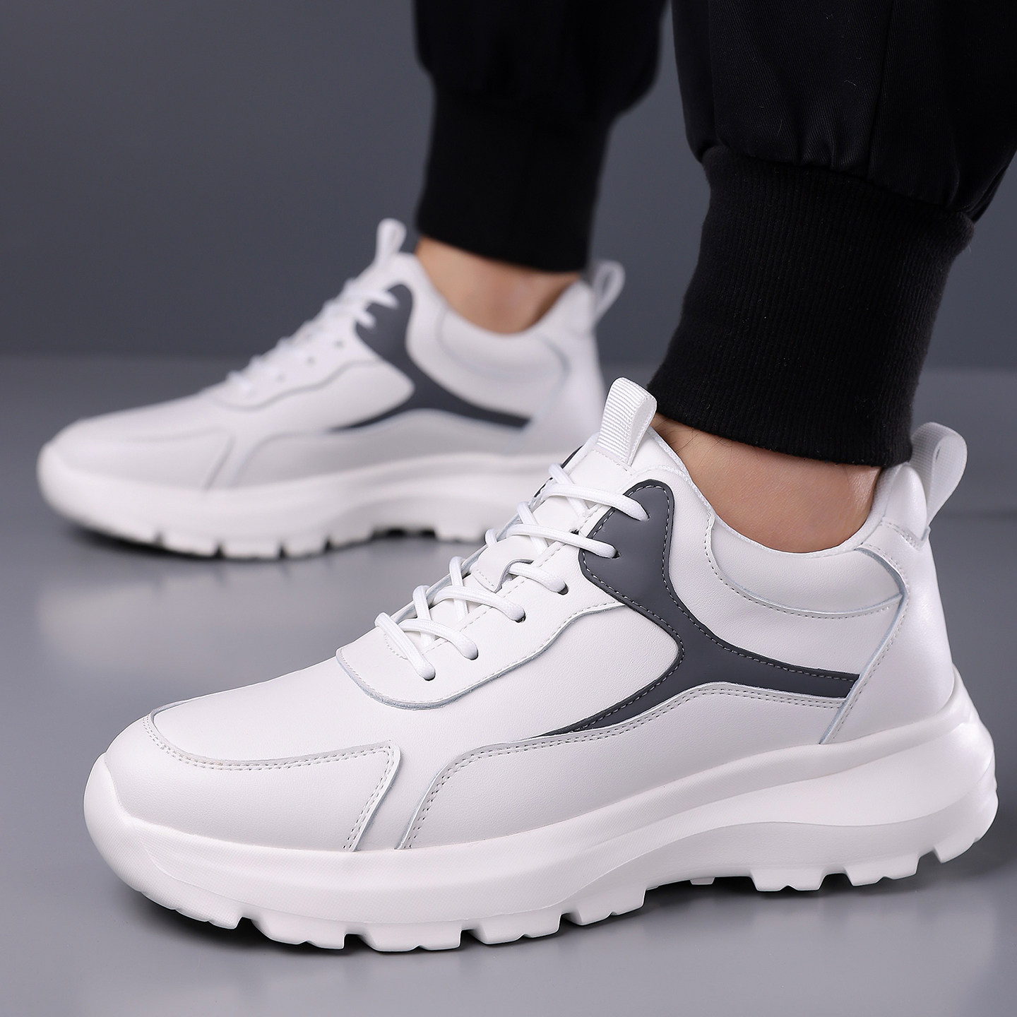 新款真牛皮男款运动休闲鞋真皮软底软面跑步鞋小白鞋内增高男鞋子