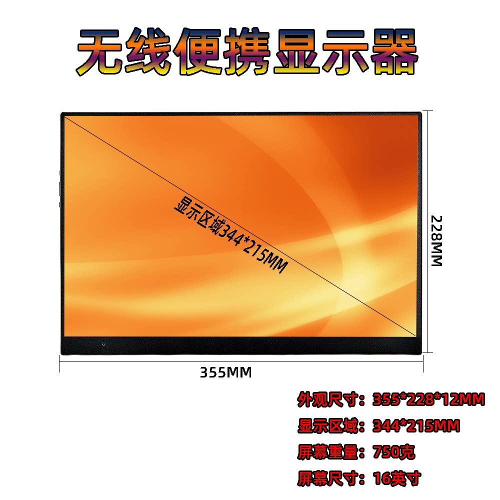 无线便携式显示器16英寸适应电脑/手机/平板无线投屏扩展XBOX/PS5