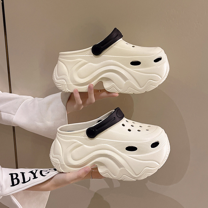厚底高跟10CM洞洞鞋小个子女款外穿夏海边沙滩防滑包头增高凉拖鞋