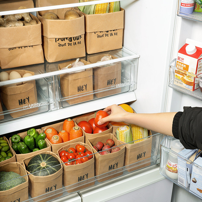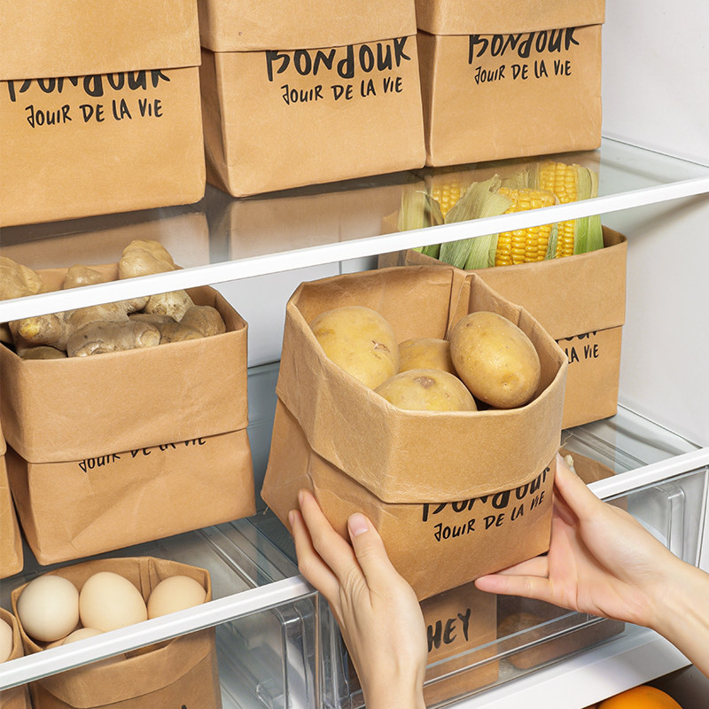 可水洗牛皮纸袋厨房冰箱水果蔬菜分类收纳袋加厚防水食品级保鲜袋
