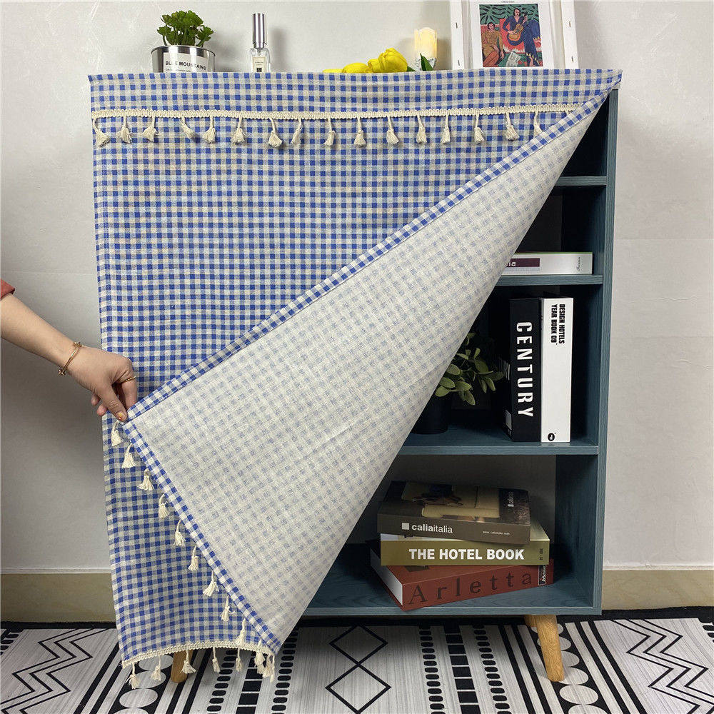 鞋架橱柜棉麻布艺小清新半帘自粘遮丑布帘厨房防尘遮挡定制魔术贴