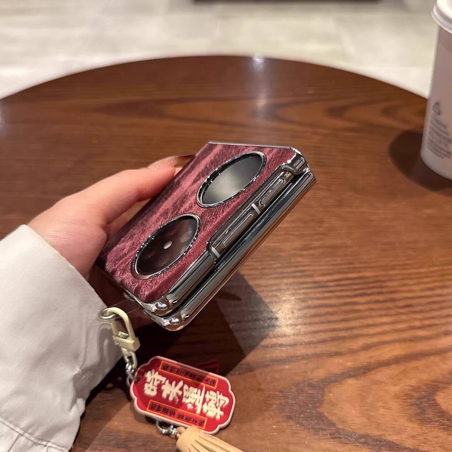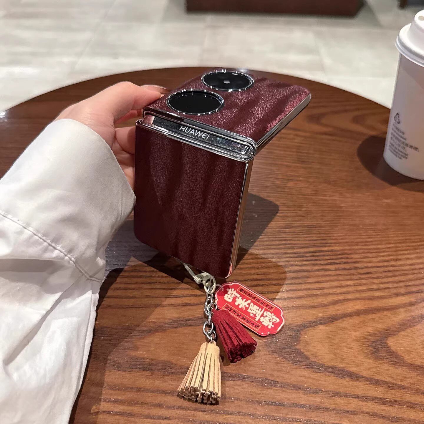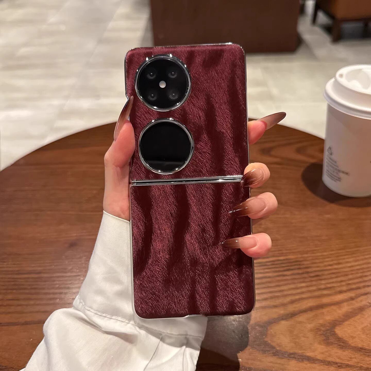 适用华为pocket2折叠屏手机壳新款勃艮第红条纹ins风p50pocket外壳女pockets超薄全包轻奢复古防摔保护套