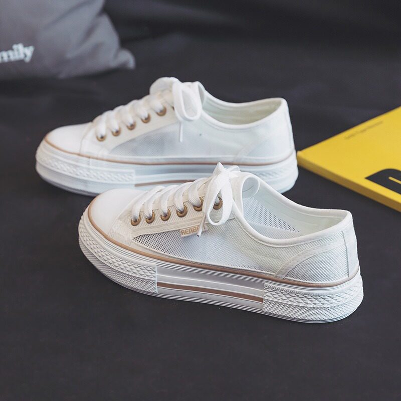 人本大码网面女鞋41-43薄款透气百搭ins板鞋42网眼小白鞋学生网鞋