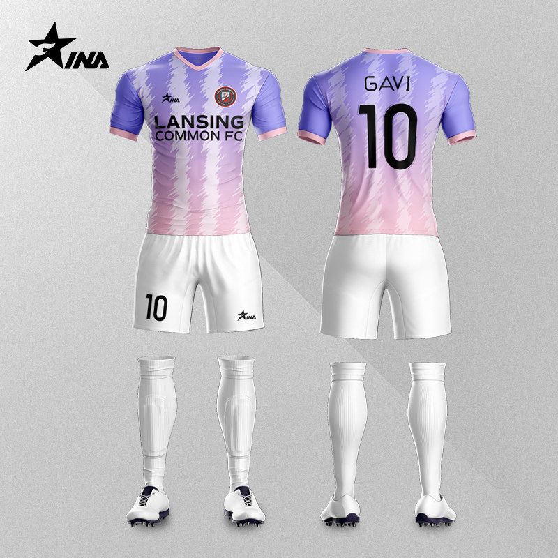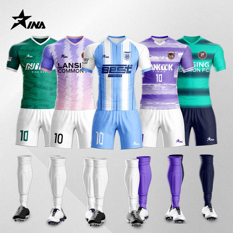 茵浪新款足球服短袖球衣成人青少年比赛组队服运动训练服套装定制