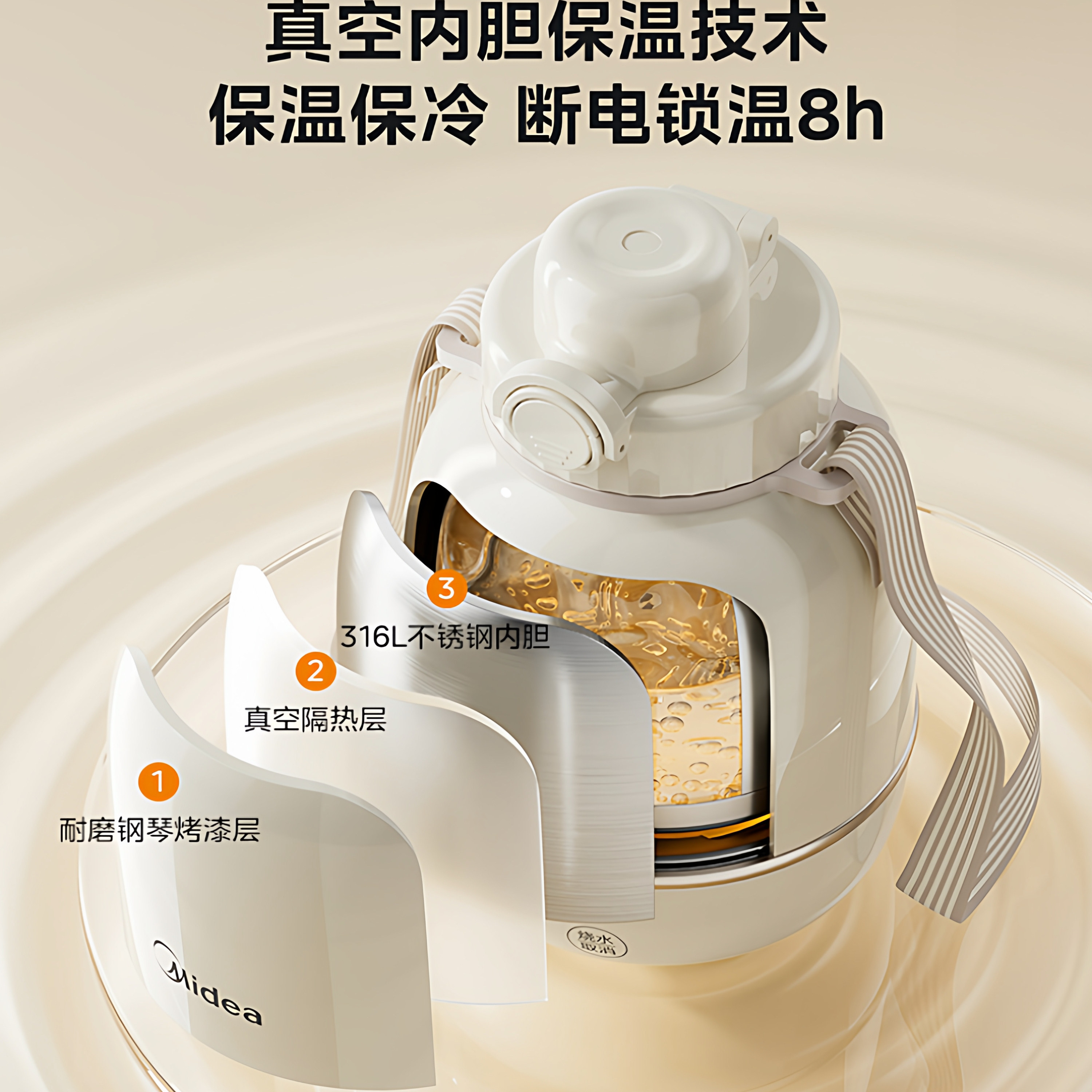 美的电热水壶便携式烧水壶小型恒温壶加热保温杯MK-DB06X19-PRO