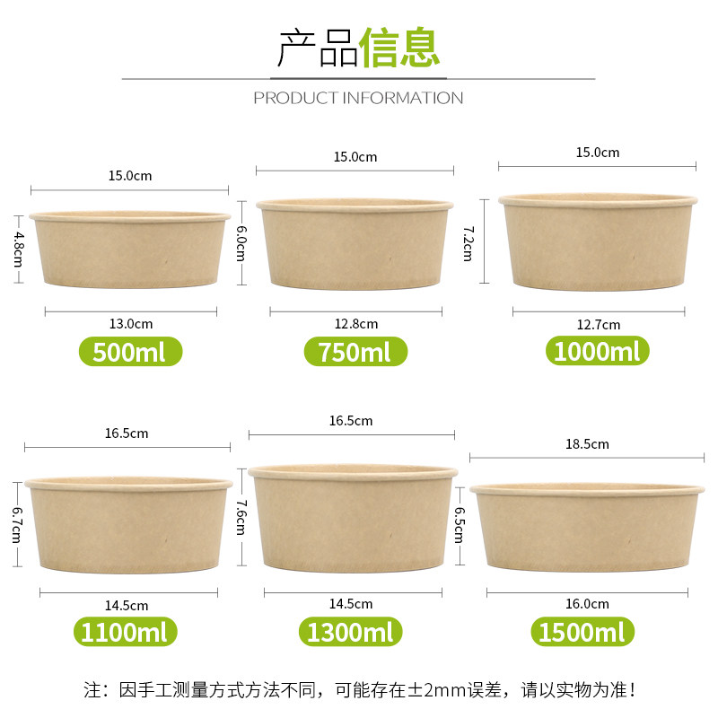 牛皮纸碗一次性打包盒商用卤肉饭水果沙拉外卖环保圆形餐盒1000ml