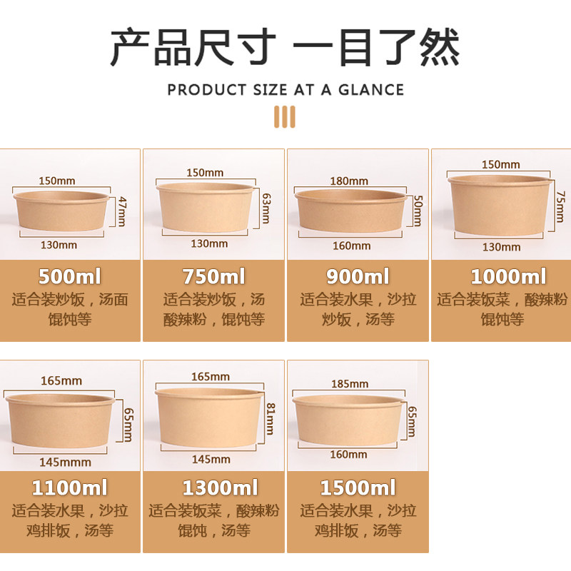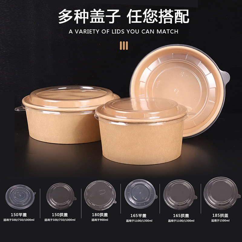 一次性牛皮纸碗打包盒加厚1000沙拉碗水果外卖卤肉饭带盖圆形餐盒