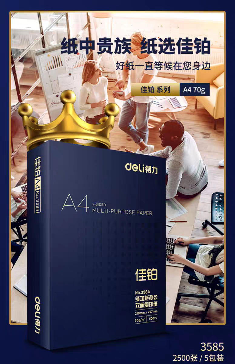 得力a4打印纸佳铂高端70g80g整箱双面打印铂印草稿纸办公用复印纸