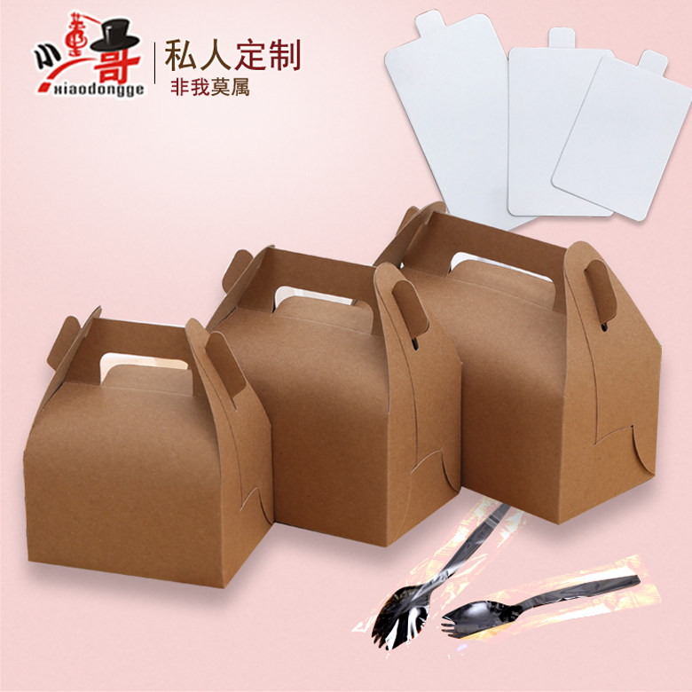 手提大中小号蛋糕西点慕斯糕点包装盒外卖炸鸡盒牛皮纸打包盒定制