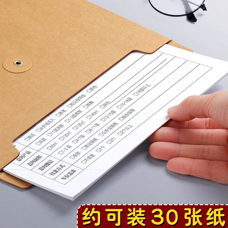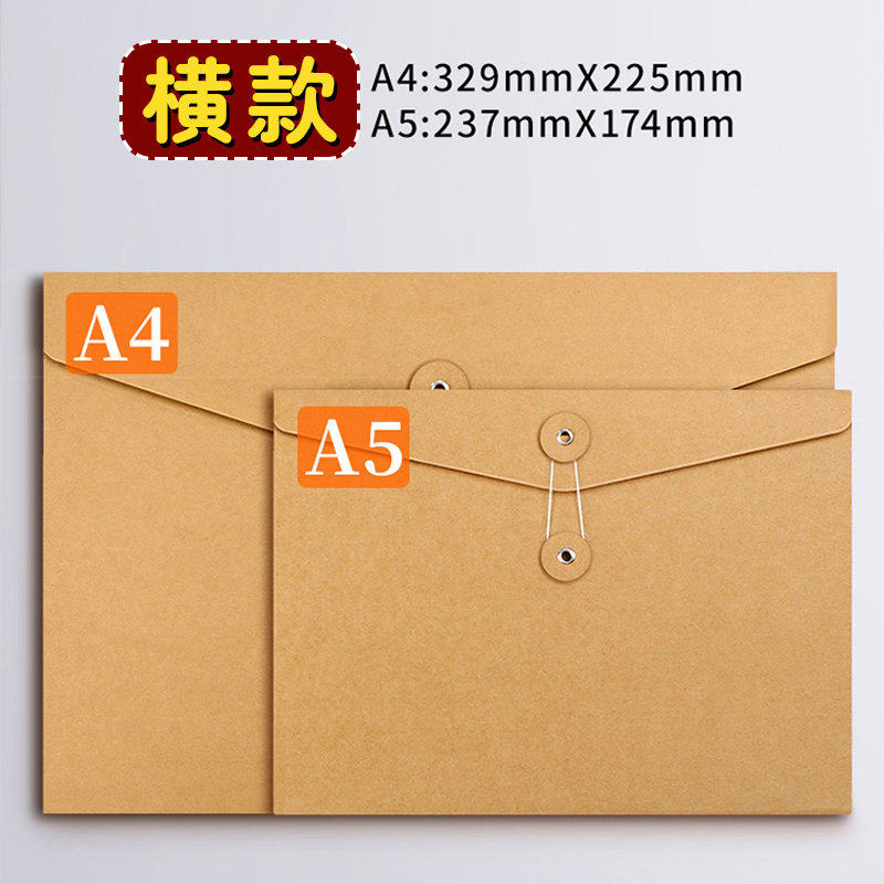 A4纸质文件袋加厚牛皮纸档案袋横版资料袋A5大容量合同收纳纸