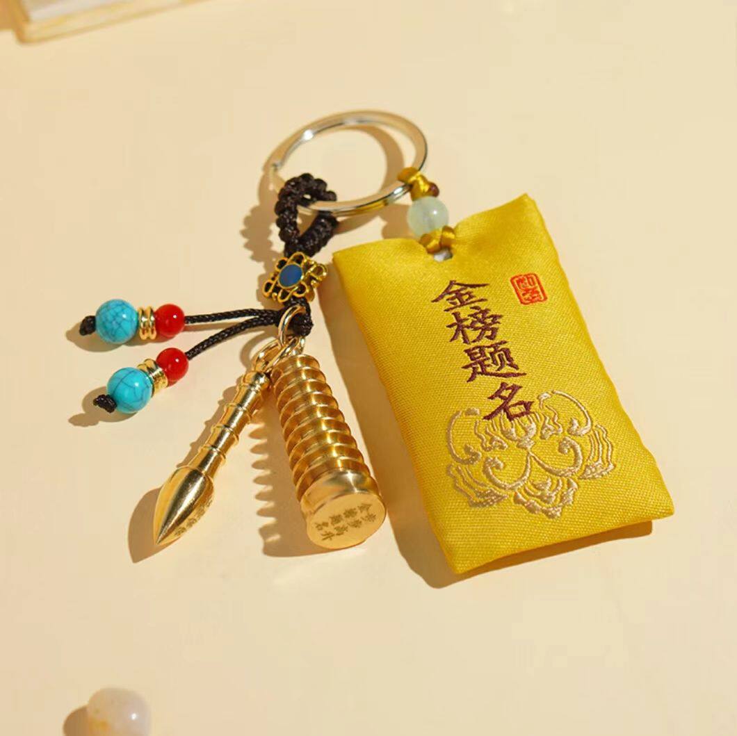 五台山金榜题名文昌塔笔黄铜钥匙扣香包囊挂件中高考好运上岸礼物