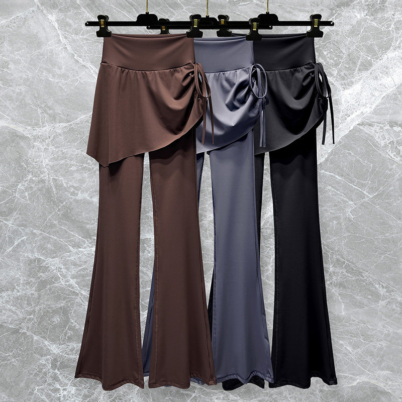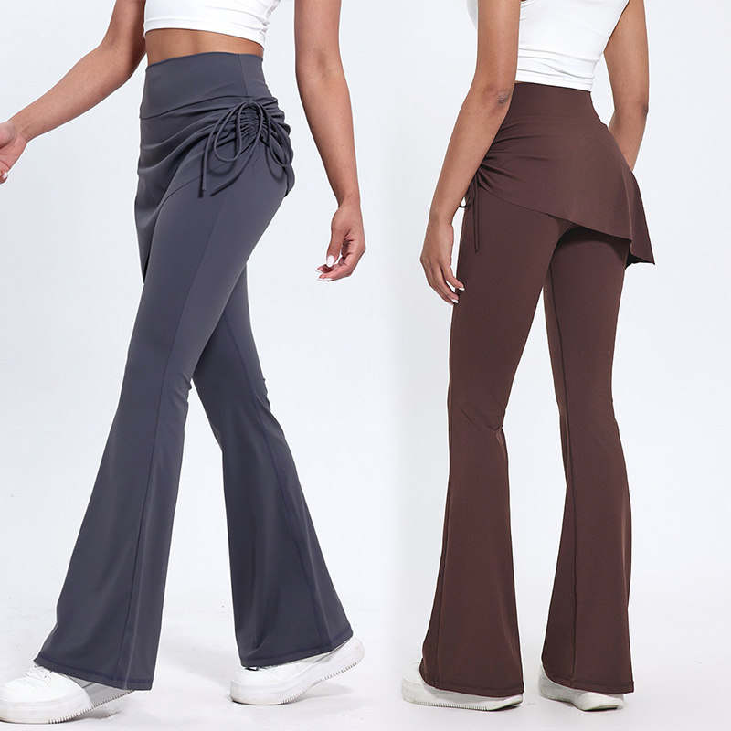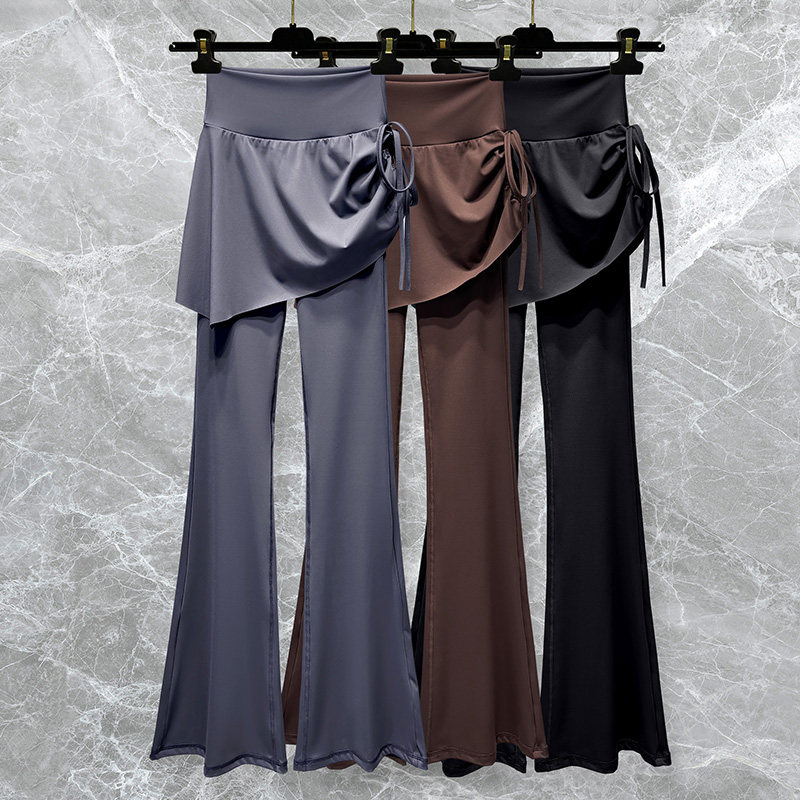 瑜伽假两件喇叭裤女时尚高腰显瘦遮臀裙裤运动健身舞蹈训练遮挡裙