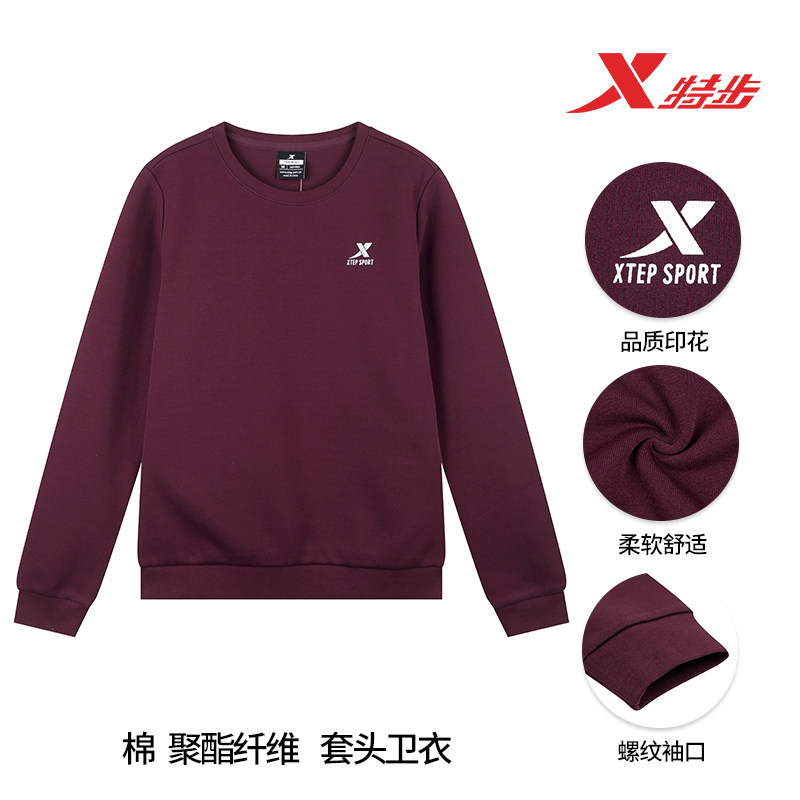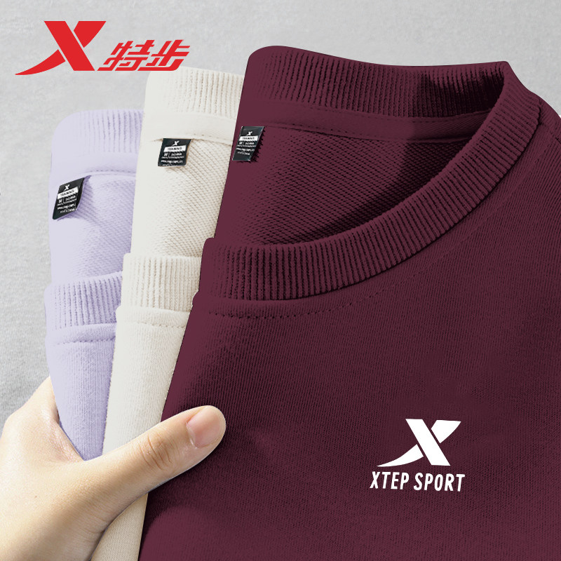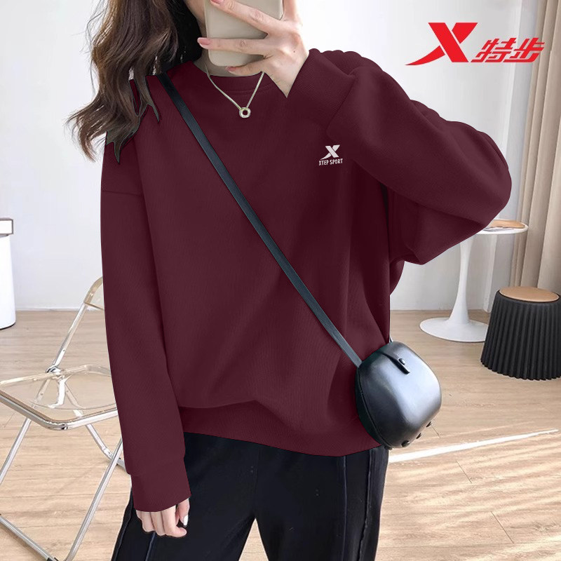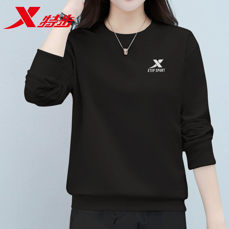 特步运动卫衣女款2026秋季新款宽松透气休闲圆领针织上衣长袖T恤