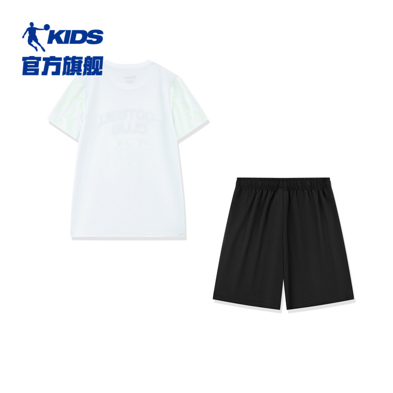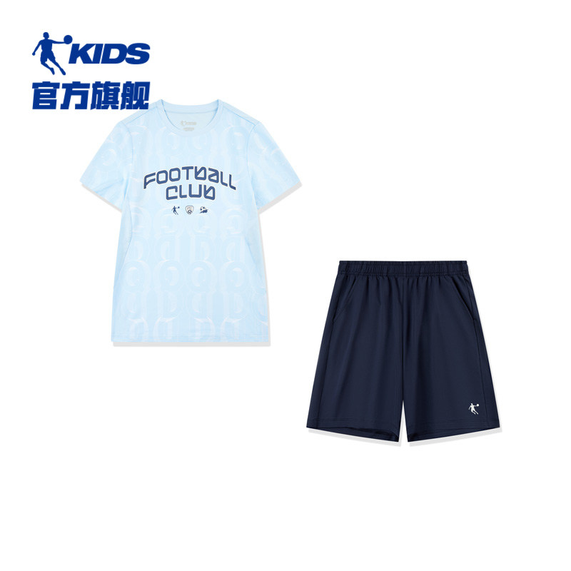 乔丹男童夏季足球套装2025夏季新款儿童速干短袖t透气凉感两件套